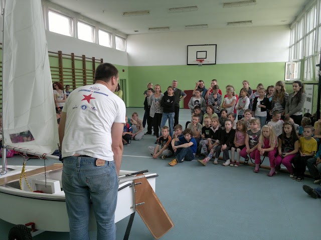 Wszystko zaczęło się od Tolkmickich Wici. Następnie obeszliśmy wszystkie wywiadówki z rodzicami w Szkole Podstawowej w Tolkmicku. W końcu, dziś w szkole w sali gimnastycznej, mieliśmy przyjemność spotkać się z dziećmi i przez jedną lekcję mogliśmy pokazać sprzęt i zaprezentować naszą ofertę.