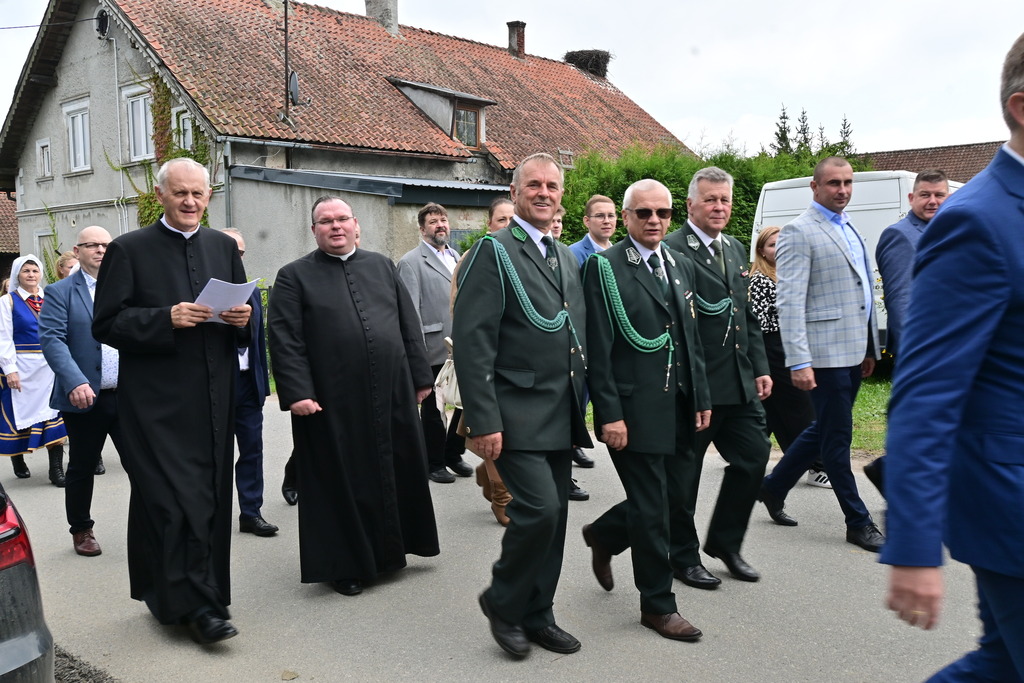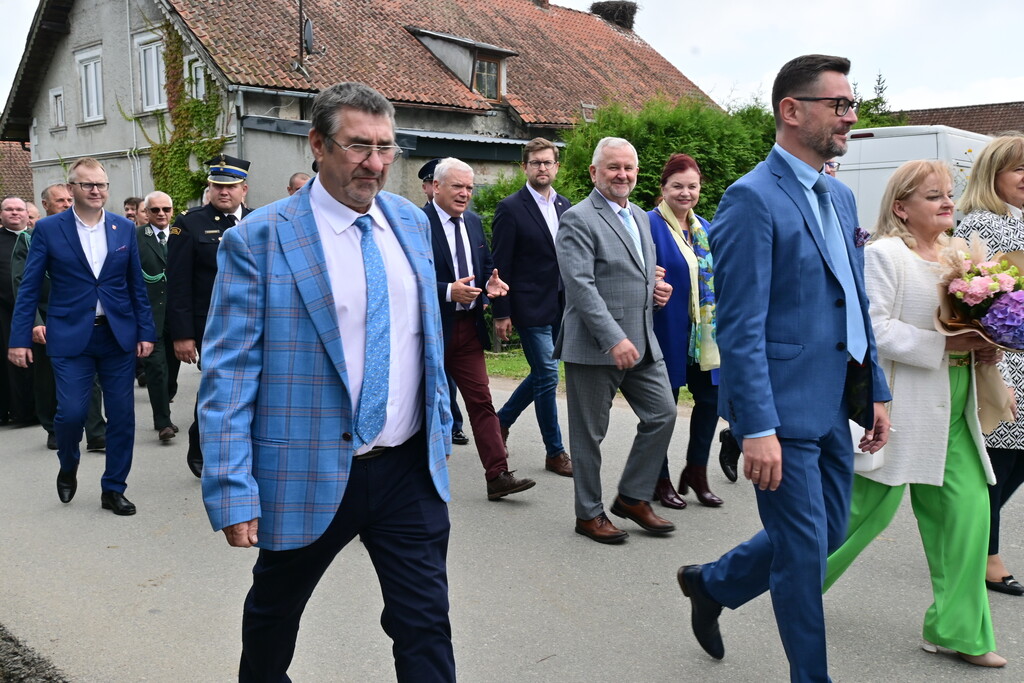 Po mszy, korowód składający się z przybyłych gości, delegacji sołectw i mieszkańców, prowadzony przez Parafialną Orkiestrę Dętą z Zielonki Pasłęckiej udał się na plac przy plebanii, gdzie nastąpiło oficjalne przywitanie i przemówienia zaproszonych gości.
