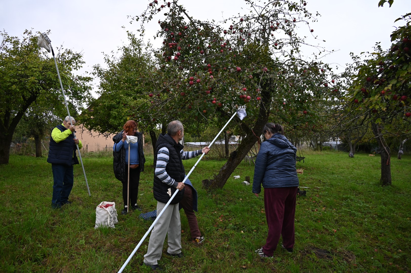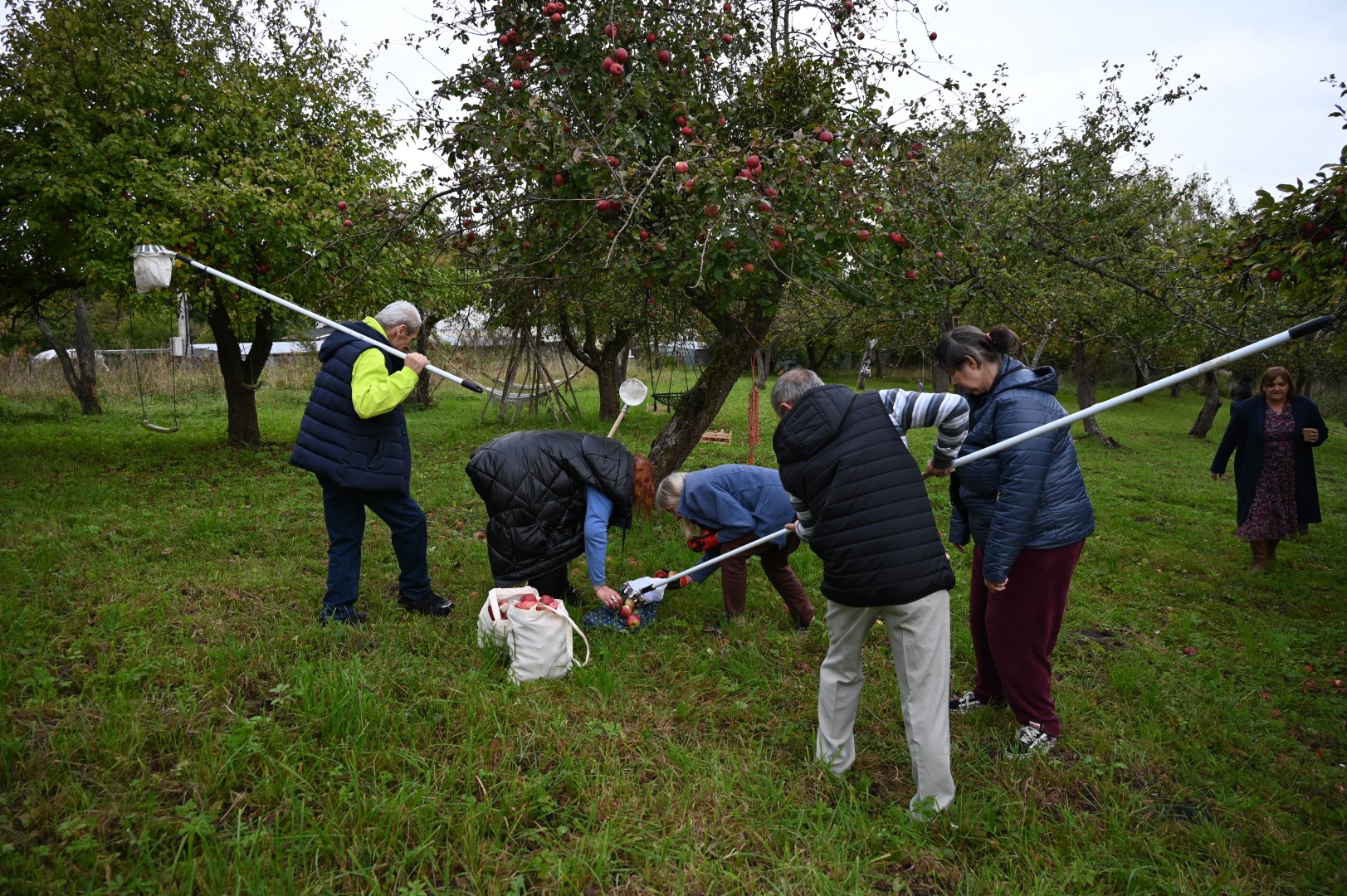 Mieszkańcy Domu Pomocy Społecznej w Tolkmicku wybrali się niedzielę 6 października do tej urokliwej, nadzalewowej miejscowości po raz drugi w ostatnim czasie. Wcześniej poznawaliśmy tam ptasie zwyczaje oraz malowaliśmy ceramiczne ptaki szkliwem, teraz odebraliśmy owoce swojej pracy – piękne, kolorowe majoliki, po dwie sztuki przypadające na każdego uczestnika. Przede wszystkim jednak harcowaliśmy po starym, przedwojennym sadzie, zrywając jabłka w kolorze czerwieni i złota, posługując się długimi tyczkami i wsypując owoce do specjalnie przygotowanych siatek z jasnego materiału; potem odbywało się ważenie, płacenie i ładowanie do skrzynek, które zabraliśmy do naszego Domu, by poczęstować innych mieszkańców i nasz troskliwy personel. Narwaliśmy tych jabłek ze 20 kilogramów.