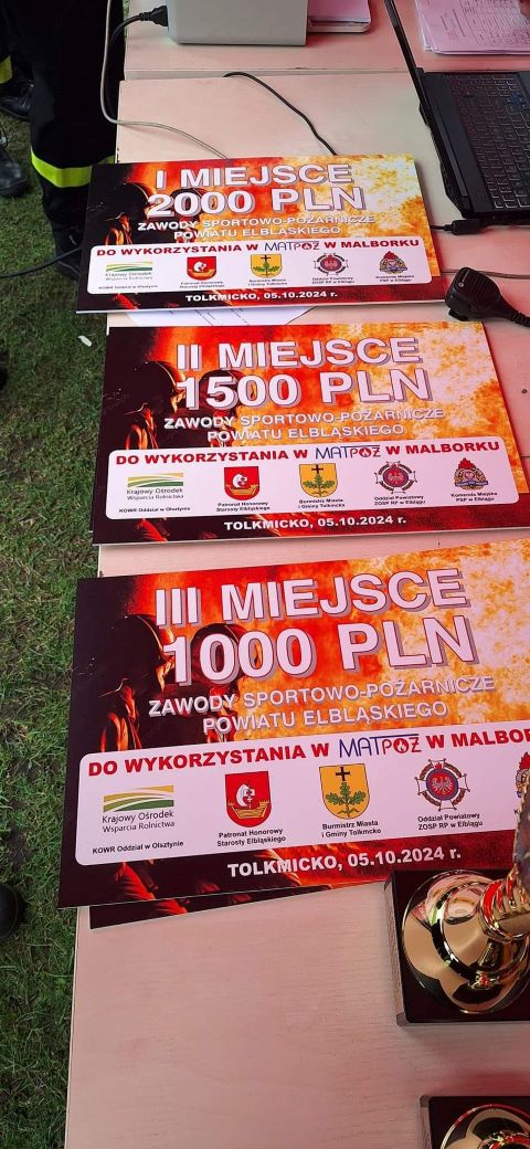 Organizatorzy zawodów: Oddział Powiatowy ZOSP RP w Elblągu; Komenda Miejska PSP w Elblągu Burmistrz Miasta i Gminy Tolkmicko.