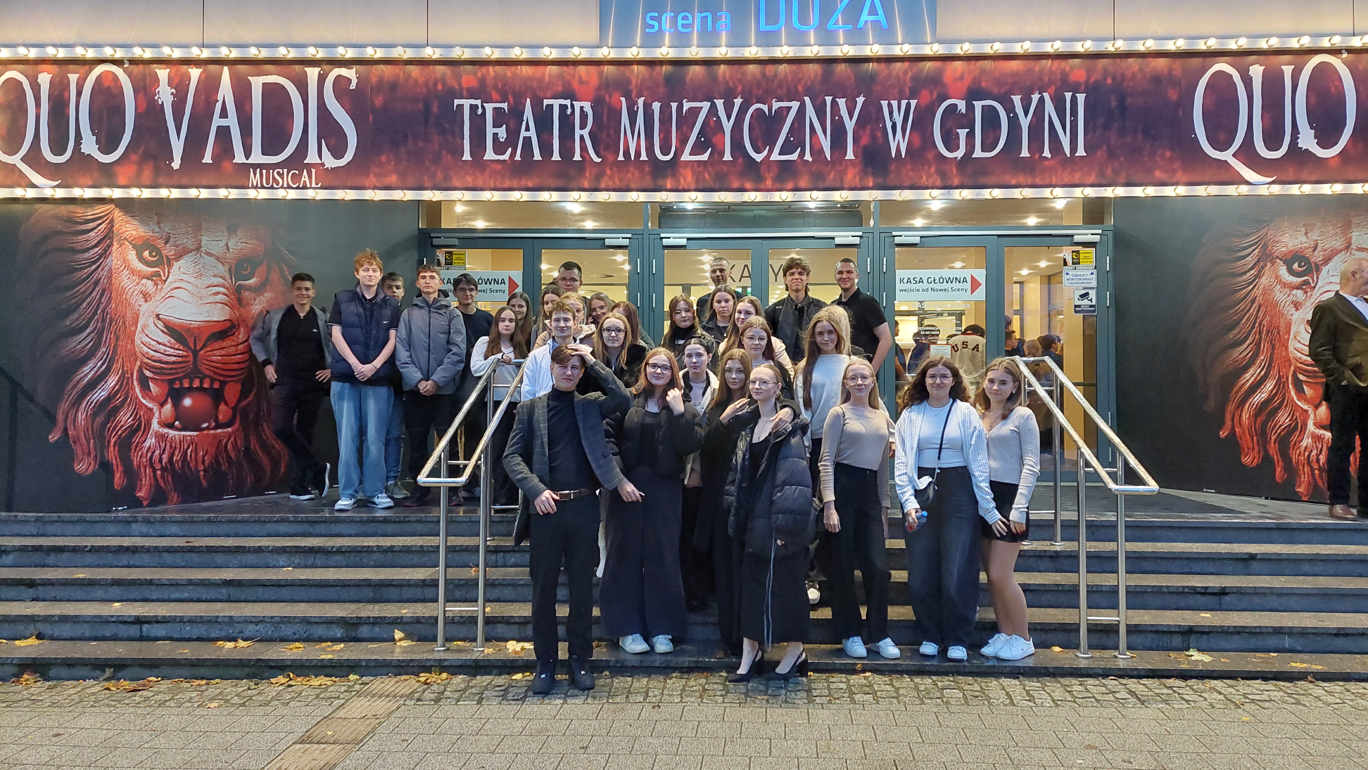 W czwartek 10 października młodzież z Zespołu Szkół w Pasłęku rozpoczęła kolejny teatralny sezon. Było to niezwykłe przeżycie, bowiem we wrześniu tego roku na deskach Teatru Muzycznego w Gdyni miała premierę sztuka pt. „Quo vadis” w reżyserii Wojciecha Kościelniaka. Niezwykły musical powstał na podstawie powieści Henryka Sienkiewicza. Młodzi miłośnicy teatru, nie mogli doczekać się chwili, w której zobaczą to niezwykłe przedsięwzięcie. Trzeba przyznać, że musical został zrealizowany z rozmachem. Fantastyczna scenografia, dzięki której publiczność została przeniesiona do kabaretu z lat 30. i jednocześnie mogliśmy być w Rzymie - to było zaskakujące połączenie. Zagłębiając się w prezentowaną historię można było zauważyć, że od wieków podlegamy tym samym mechanizmom, a Furie nigdy nie będą się nudziły, bo człowiek zawsze będzie potrzebował wrażeń, władzy i zemsty. Miłość Ligii i Marka Winicjusza, Petroniusza i Eunice oraz Akte do Nerona zachwycała i wzruszała publiczność. Nie zabrakło opisu prześladowań chrześcijan, można było zobaczyć uczty z żywymi pochodniami i arenę, na której ginęli rozszarpywani przez dzikie zwierzęta ludzie. Zapierające dech w piersiach sceny zbiorowe, fantastyczny taniec, przepiękne partie wokalne sprawiły, że ten wieczór był magiczny, skłaniający do refleksji i pozostający w pamięci na długo.