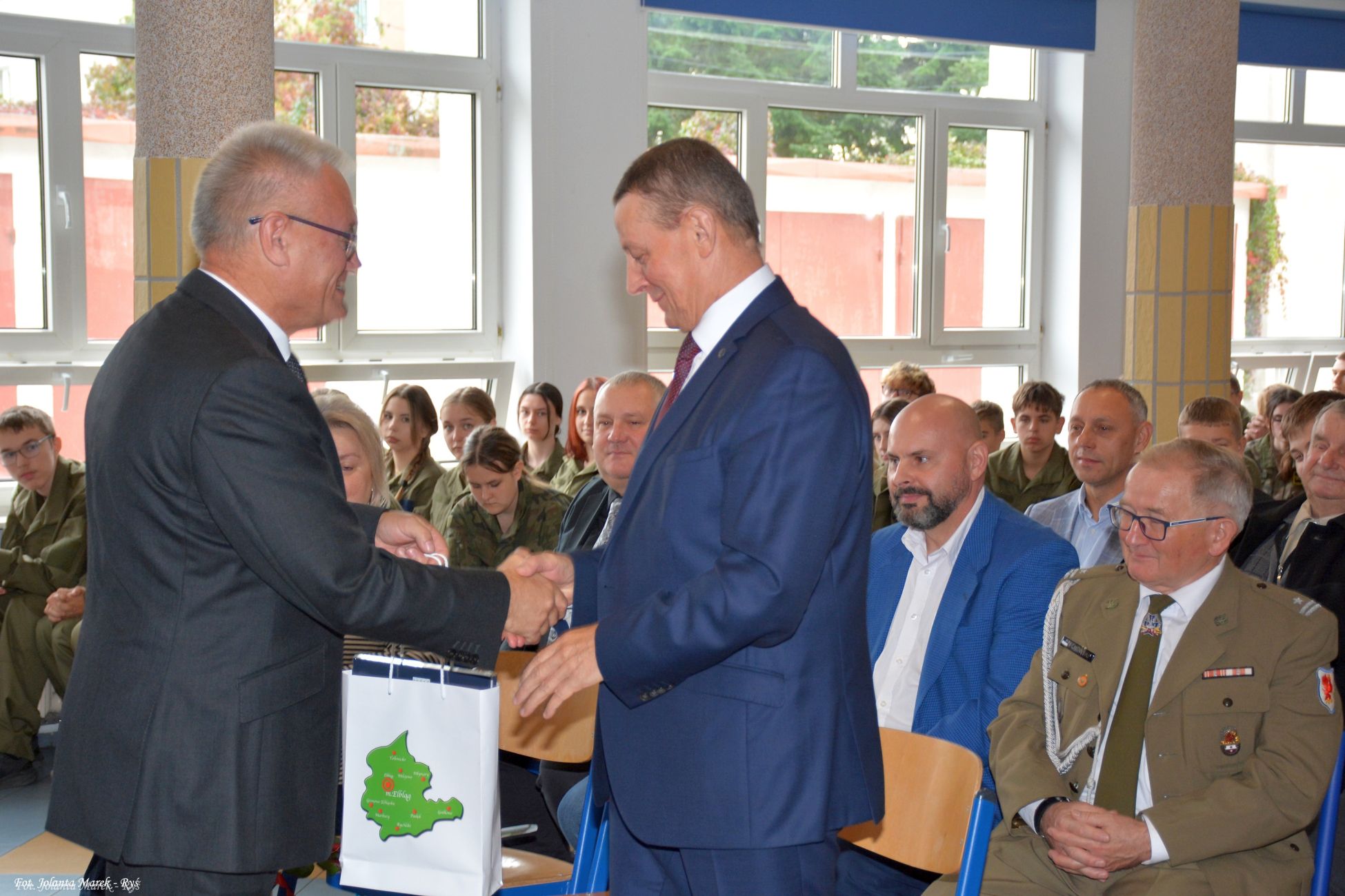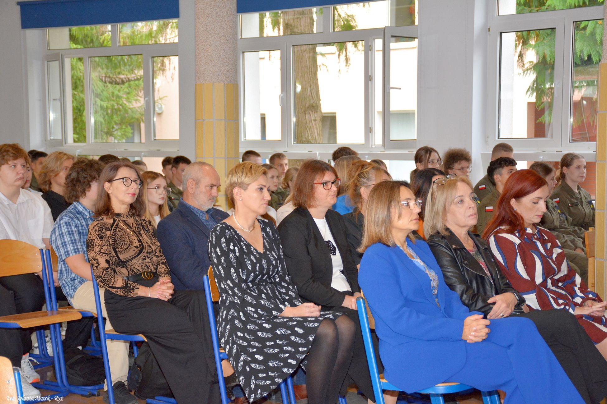W uroczystości uczestniczyli Wicestarosta Elbląski pan Ryszard Zając, dyrektor Poradni Psychologiczno-Pedagogicznej w Pasłęku pani Teresa Brewka, przewodnicząca Rady Rodziców pani Ewa Błachnio-Semkiw, emerytowani nauczyciele oraz szkolna społeczność.