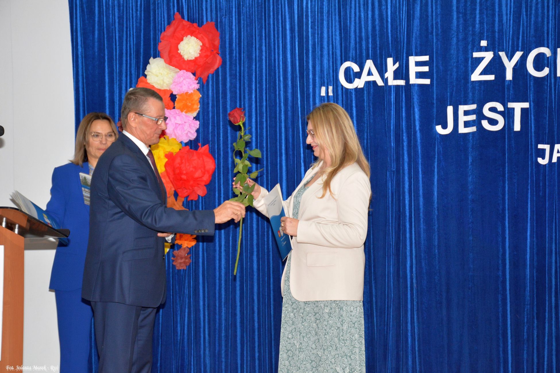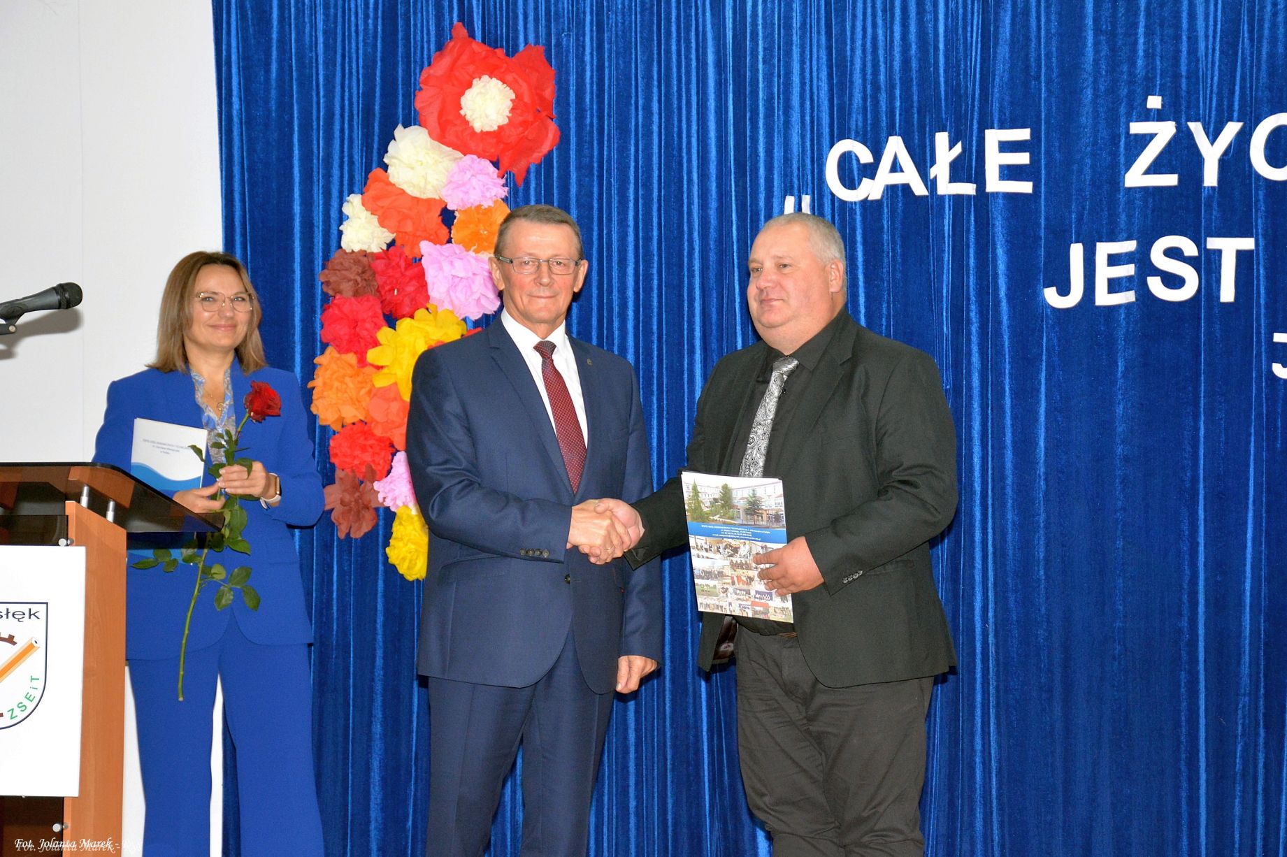 Dyrektor szkoły pan Marian Matuszczak przypomniał historię święta edukacji oraz podziękował nauczycielom za ich ciężką i odpowiedzialną pracę, pogratulował dotychczasowych osiągnięć. Zwrócił również uwagę na trud i poświęcenie nauczycieli angażujących się w różne przedsięwzięcia szkoły. W następnej kolejności głos zabrał przedstawiciel Starostwa Powiatowego pan Wicestarosta Elbląski Ryszard Zając, który podziękował za pracę i życzył dalszych sukcesów nauczycielom i wszystkim pracownikom oświaty.