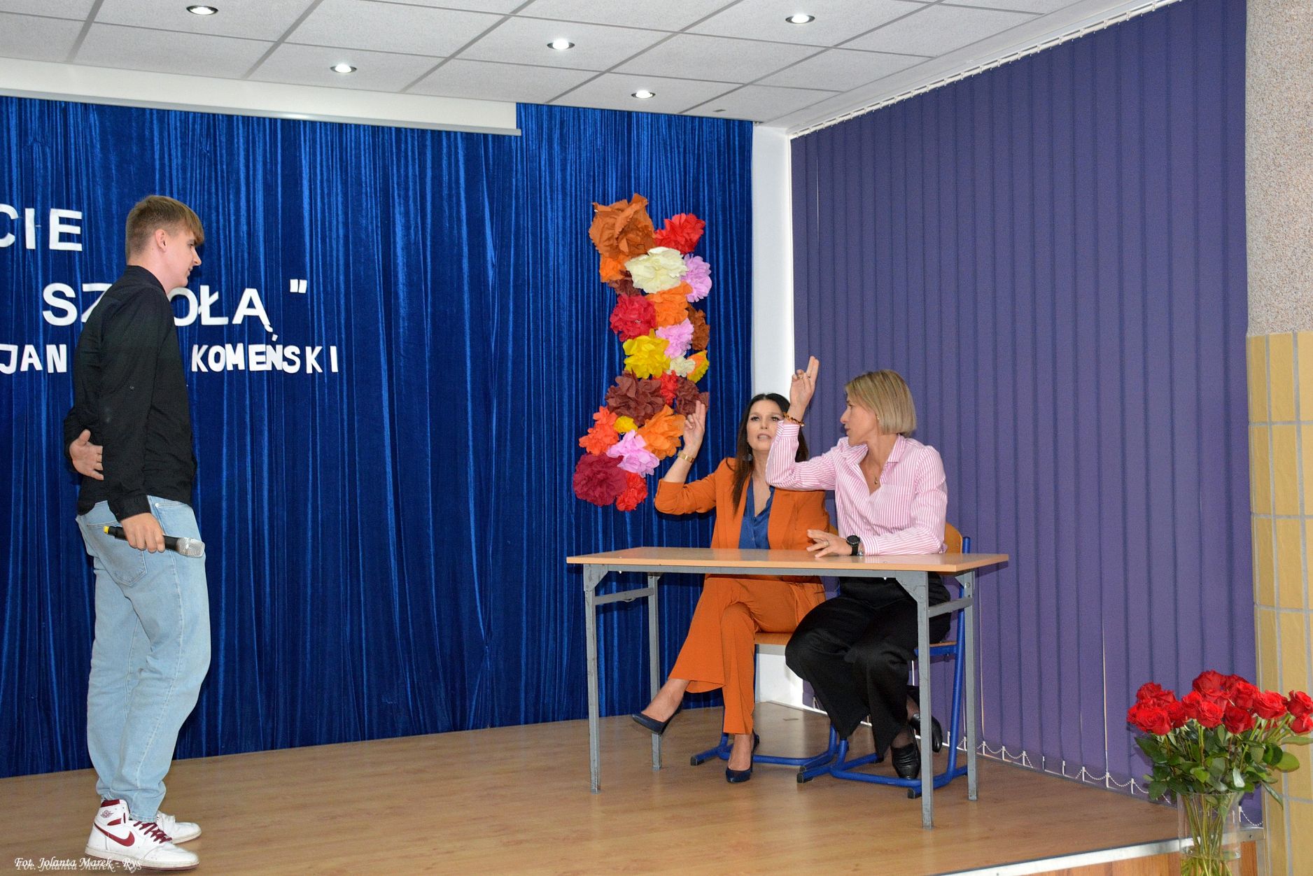 Część artystyczną akademii przygotowała klasa II OPW pod opieką pani Justyny Konopackiej oraz klasa III GT pod opieką pani Małgorzaty Purzyckiej. Młodzież przygotowała program artystyczny, w którym przedstawiła szkołę z nutką humoru. Uczniowie również podziękowali za wytrwałość, cierpliwość i trud nauczycieli w codziennej pracy, wręczając wszystkim czerwone róże.
