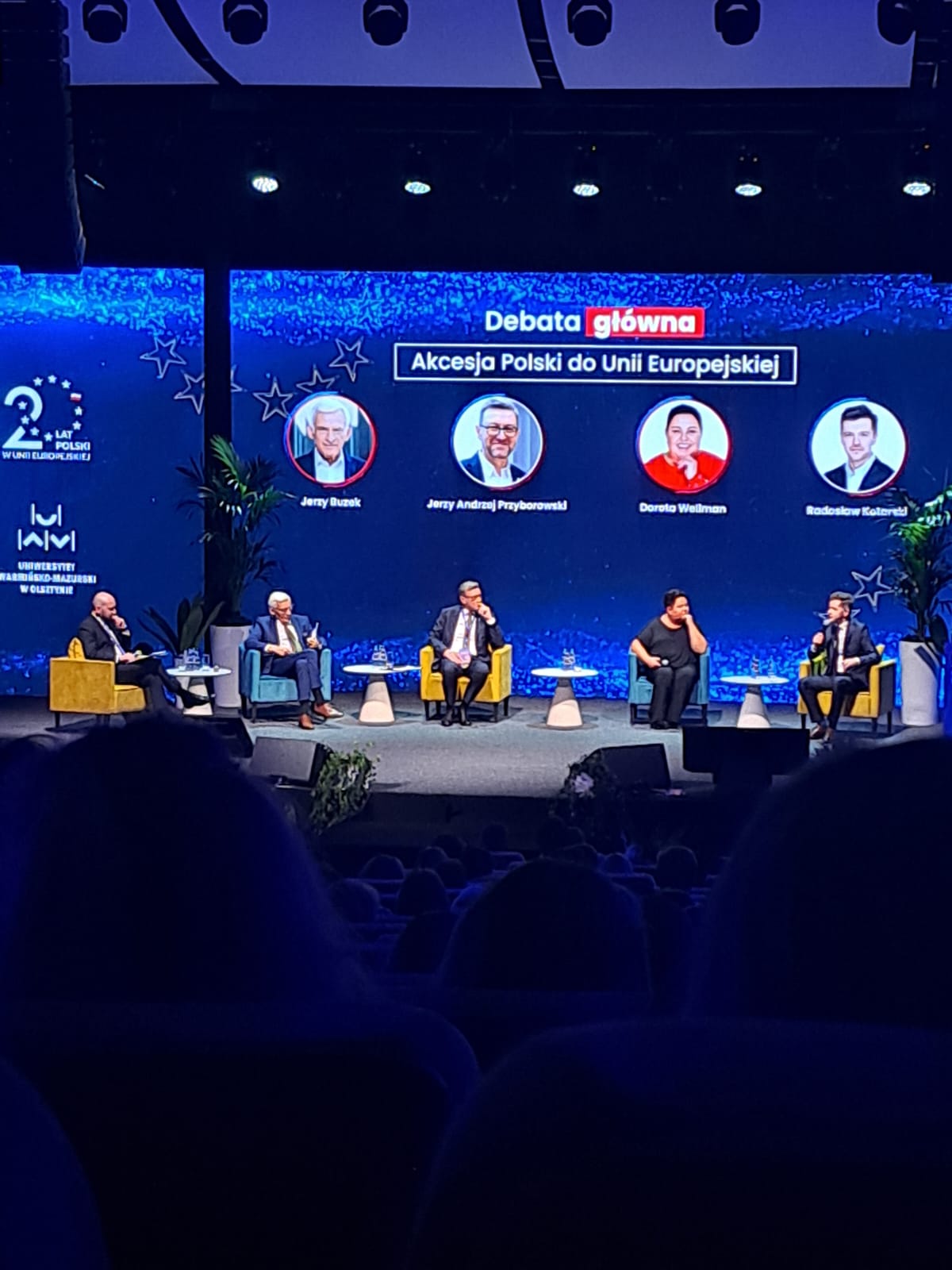 Społeczność Uniwersytetu Warmińsko-Mazurskiego w Olsztynie zorganizowała obchody 20-lecia obecności Polski w Unii Europejskiej. W czwartek 17 października w Centrum Konferencyjnym obyło się wiele paneli dyskusyjnych i debat na temat m.in. drogi Polski do UE, gospodarki, nauki, możliwości jakie daje UE studentom. W spotkaniach tych wzięli udział znamienici goście jak premier Jerzy Buzek, marszałek sejmiku województwa warmińsko-mazurskiego Marcin Kuchciński, Dorota Wellman, czy Radosław Kotarski. Na to niezwykłe wydarzenie zostali zaproszeni uczniowie szkół ponadpodstawowych, którzy zakwalifikowali się do udziału w finale konkursu. Jest nam niezmiernie miło poinformować, że w konkursie wzięły udział uczennice Zespołu Szkół w Pasłęku: Karolina Felska (3b), Zuzanna Hrywniak (3b) i Wiktoria Łukaszuk (4b). Dziewczyny zespołowo przygotowały pracę na temat „Jak obecność Polski w Unii Europejskiej wpływa na moje codzienne życie?", która pozwoliła im zakwalifikować się do zmagań finałowych. A następnie odpowiadały na szczegółowe pytania o historii, kulturze, czy organizacji, jaką jest UE. Ostatecznie uzyskały zaszczytne szóste miejsce. Konkurs i obchody 20-lecia obecności Polski w UE były niesamowitym wydarzeniem, które przypomniało o tym, jak dużą rolę Unia Europejska odgrywa w naszym codziennym życiu i jak zmieniła się Polska przez 20 lat obecności w organizacji.