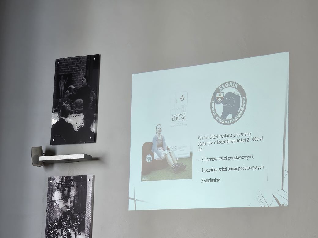 Fundacja Elbląg powstała w 2000 roku i od tamtej pory działa charytatywnie, kierując się potrzebami mieszkańców Elbląga oraz całego Regionu Elbląskiego. Realizuje programy stypendialne „Szansa”, „Słonik”, Fundusz Młodych Talentów oraz Stypendium Specjalne od Zarządu, dzięki czemu umożliwia zdobycie wykształcenia niezamożnym, zdolnym uczniom i studentom z terenu Elbląga i okolic. Tegorocznymi darczyńcami było m.in. Starostwo Powiatowe w Elblągu, ,Nadleśnictwo Elbląg, firma Avante oraz darczyńcy indywidualni.