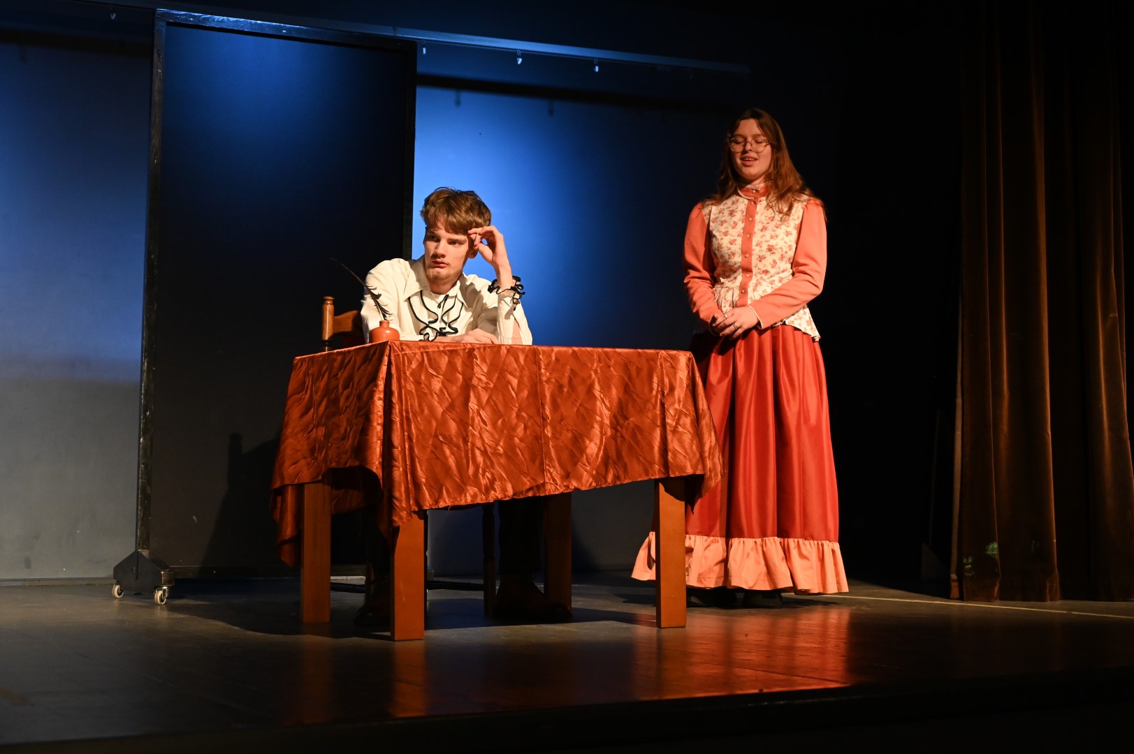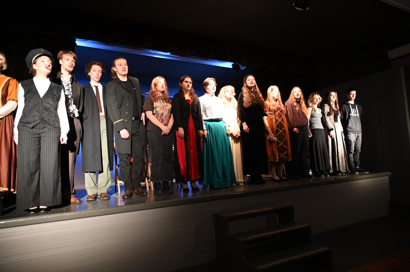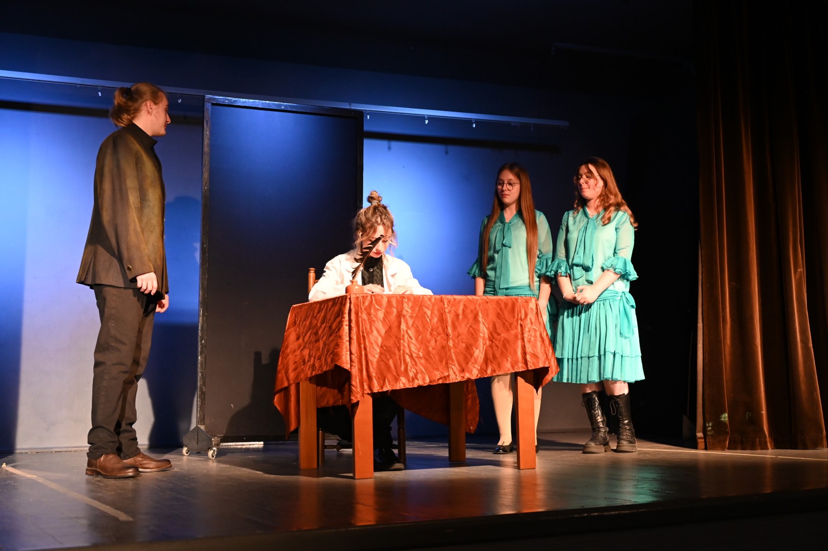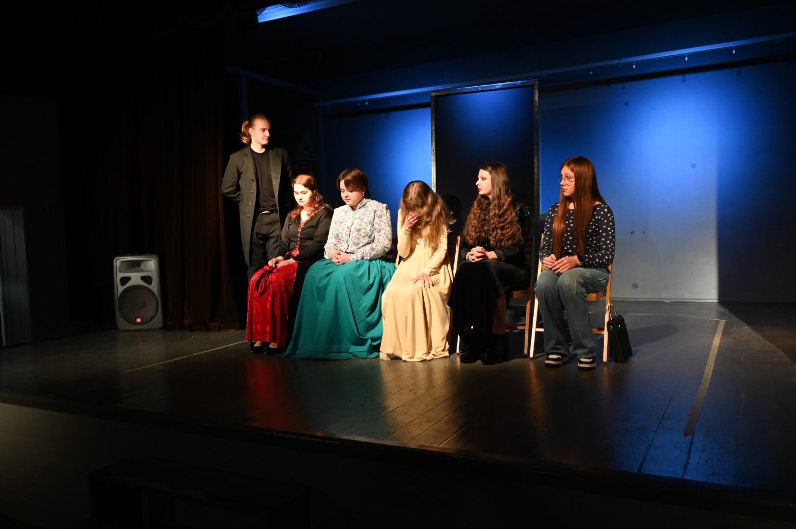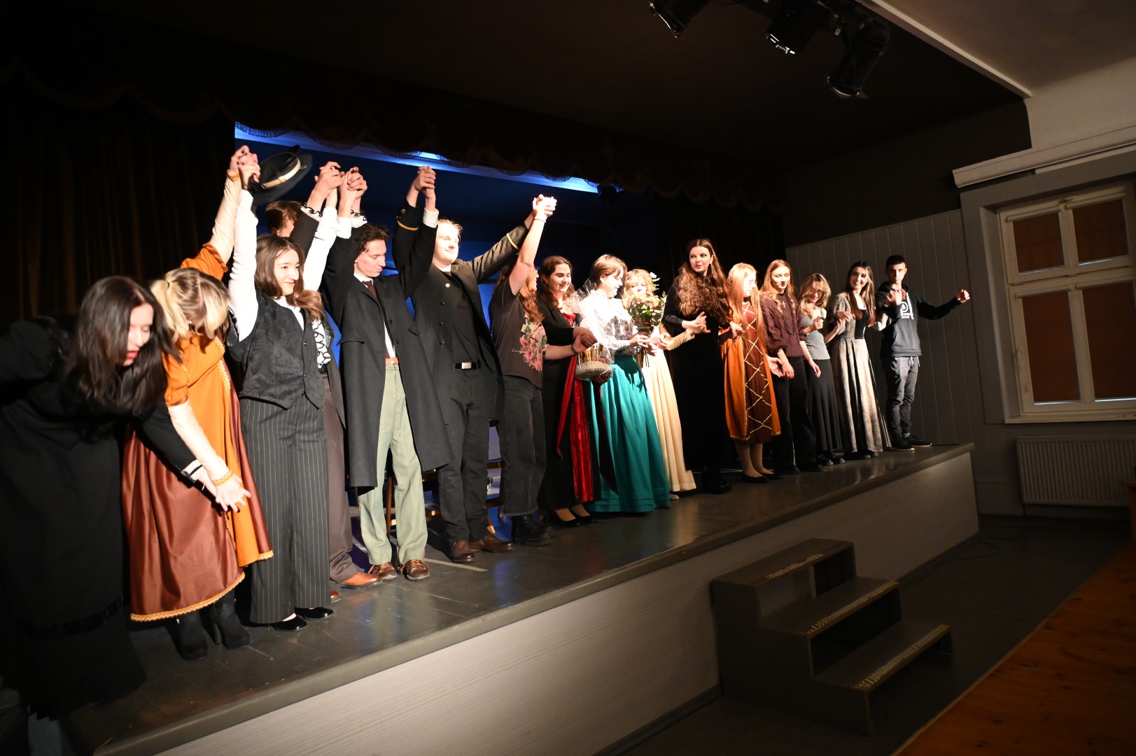 Młodzież odegrała także spektakl teatralny stanowiący crème de la crème „JESIENIAR’24”. „Ilu jest mądrych na tym świecie ?”, według scenariusza Wojciecha Karpińskiego, z piosenką Ludwika Jerzego Kerna, przeniósł nas w biograficzne zakamarki słynnych polskich postaci historycznych, ukazując – nierzadko w krzywym zwierciadle – codzienne perypetie i twórcze dylematy: Adama Mickiewicza, Juliusza Słowackiego, Marii Skłodowskiej-Curie, Marii Konopnickiej i Elizy Orzeszkowej. Akcja snuła się wartko, iskrzyła sytuacyjnym humorem, fabuła miejscami zaskakiwała, ale przyznać trzeba, iż rzetelnie została osadzona w realiach czasu i miejsca, o których opowiadała. Nie wszystko zapamiętaliśmy ze szkoły, nie o wszystkim nam mówiono, tym bardziej z zainteresowaniem śledziliśmy losy wielkiego wieszcza uciekającego przed zawiedzionymi uczuciami aż pięciu kochanek, czy dwóch wielkich pisarek i emancypantek, które jako nastolatki przyjaźniły się na pensji sióstr sakramentek w Warszawie, a jako dojrzałe i znane kobiety nie potrafiły ze sobą rozmawiać bez wzajemnej złośliwości i uszczypliwości.
