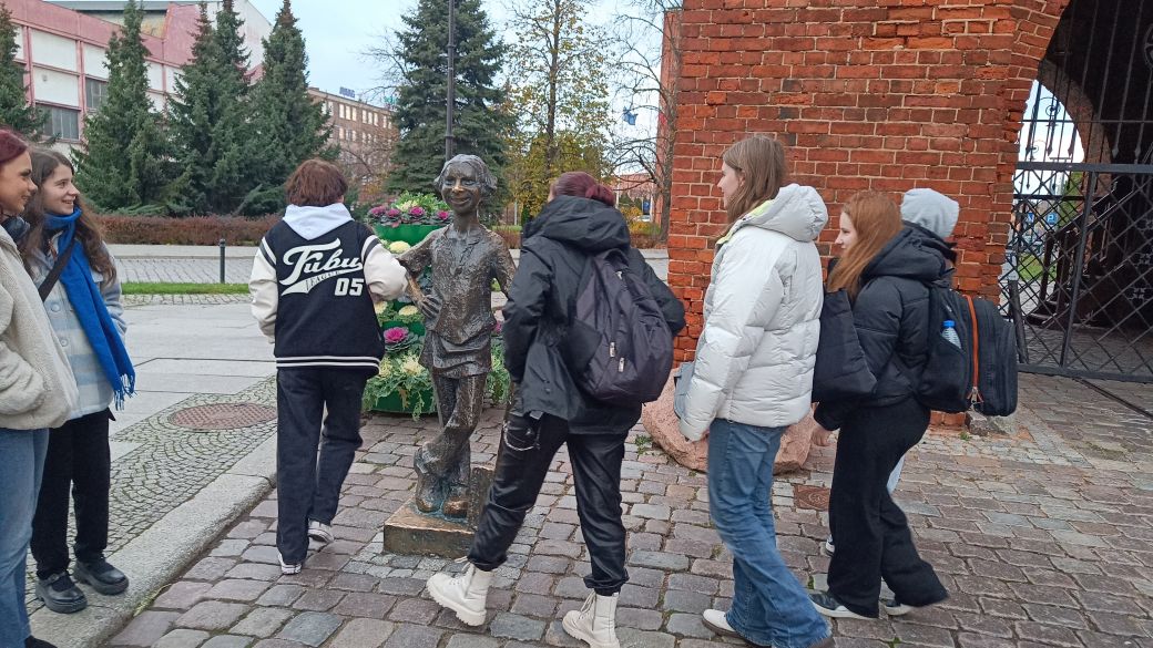 Takie wizyty to też czas poszerzania wiedzy o kulturze, architekturze i zabytkach partnerskiej szkoły. Wieczorem nasi goście wybrali się na spacer po elbląskiej starówce, która oświetlona wieczorową porą zrobiła na nich dość spore wrażenie. Nie obyło się też bez pogłaskania Piekarczyka w nos na szczęście:) W kolejnych dniach goście zwiedzili Muzeum Elbląskie, poznając historię miasta i regionu, zwiedzili słynny zamek krzyżacki w Malborku, odwiedzili Galerię EL oraz przeliczne zabytki Gdańska. Wieczorami kosztowali naszych polskich dań. Było pysznie! Goście zdradzili nam, że belgijskie frytki na naszej starówce - smakują tak samo jak w Belgii!