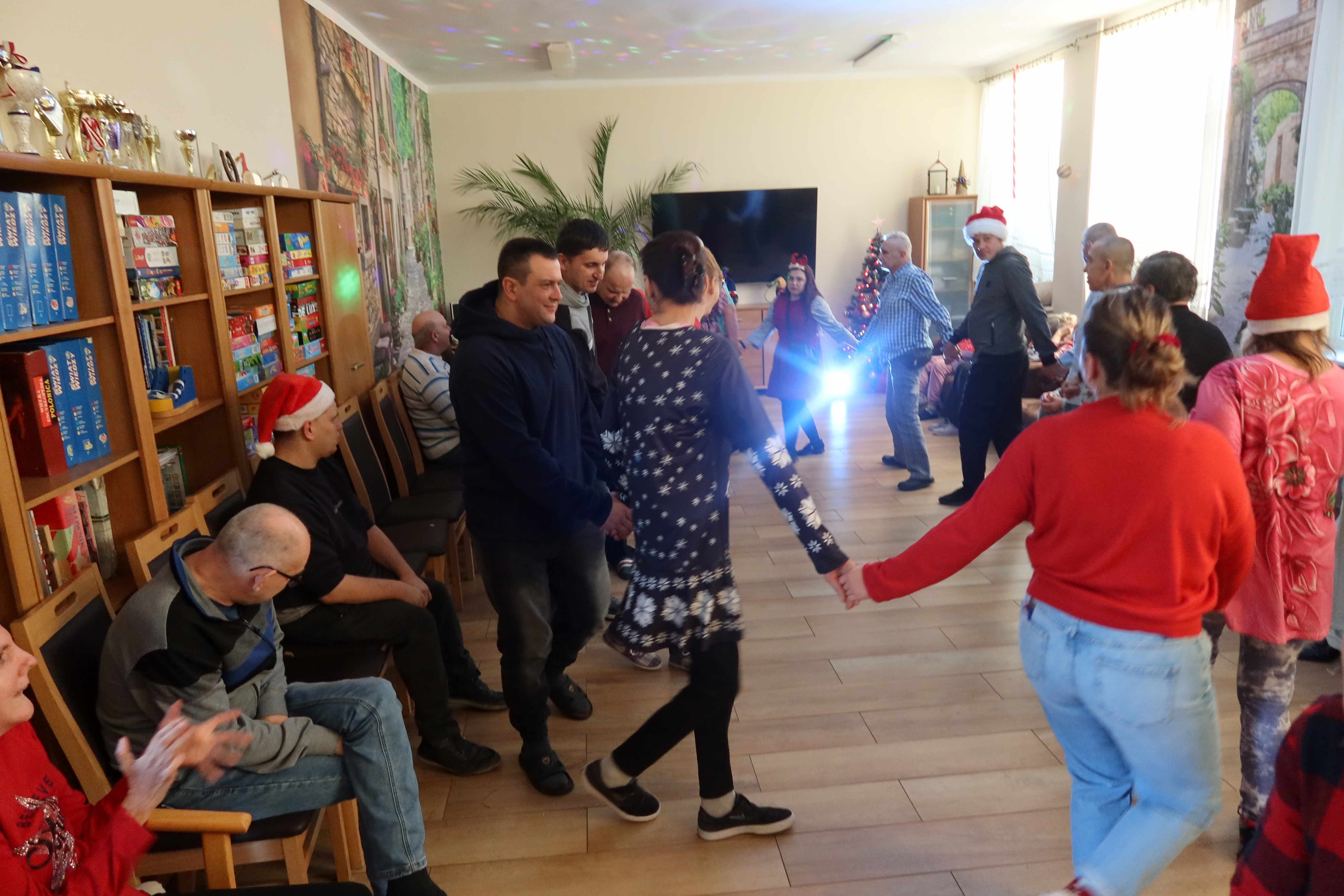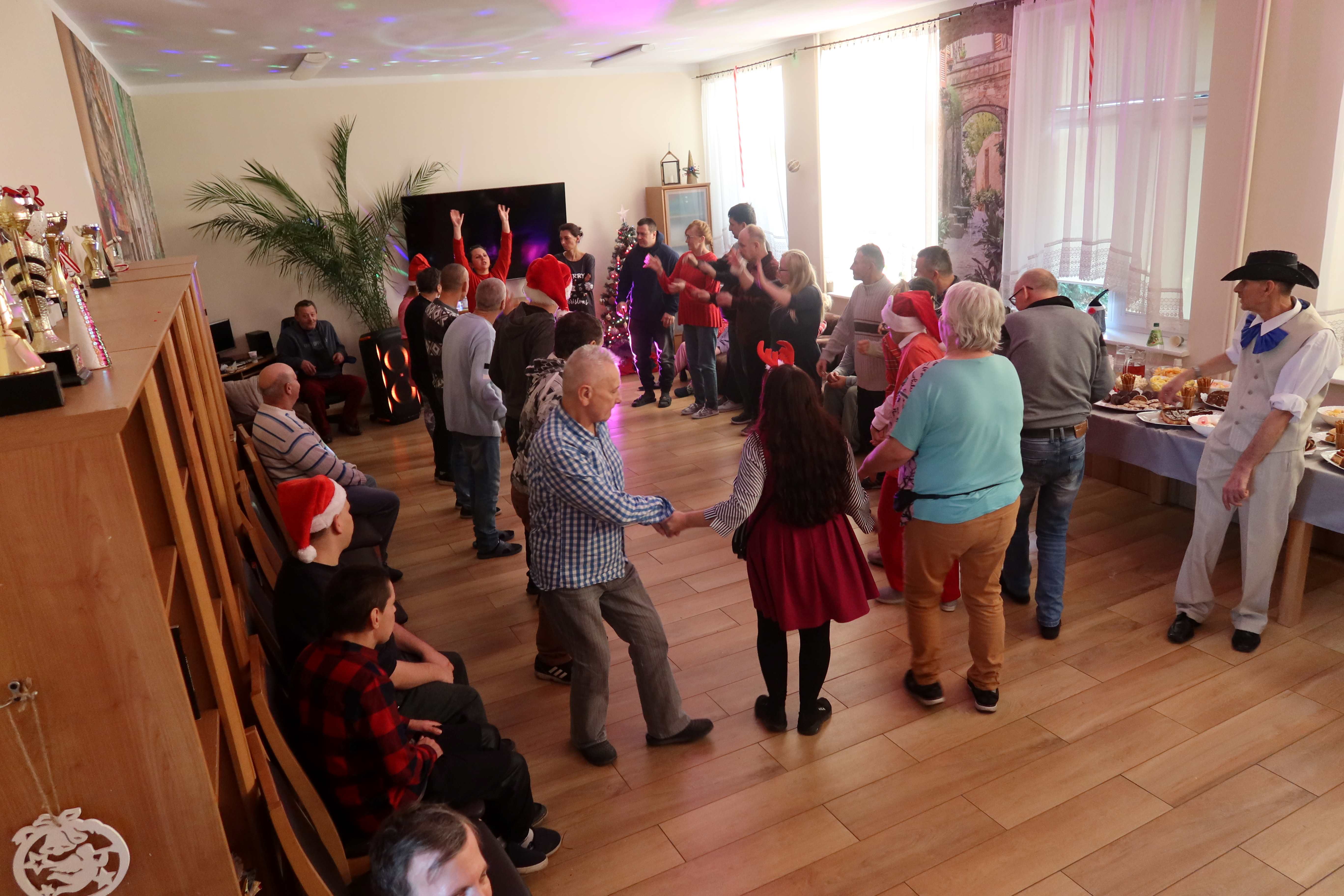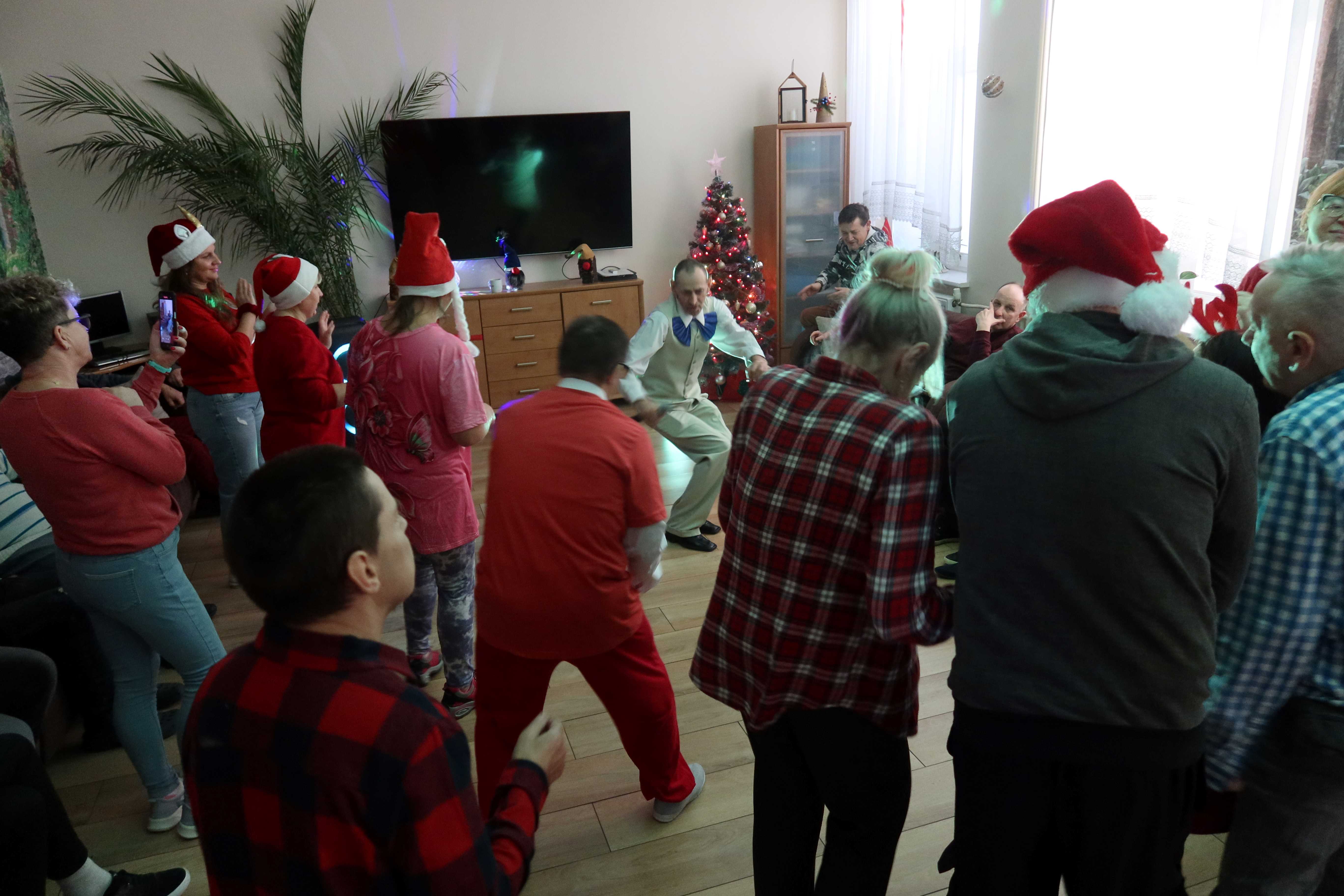 W piątek 6 grudnia 2024 roku Środowiskowy Dom Samopomocy w Przezmarku zamienił się w magiczną krainę Mikołaja. Sala została przystrojona w świąteczne dekoracje – migoczące lampki, choinkę, skrzaty oraz czerwone akcenty nadając wnętrzu niepowtarzalny klimat. Na uczestników i zaproszonych Gości – podopiecznych z Warsztatu Terapii Zajęciowej przy DPS „Krokus” we Władysławowie czekało mnóstwo atrakcji. Wśród konkursów największą popularnością cieszył się konkurs na najpiękniejszy strój Mikołajkowy. Wspaniałej zabawie i wspólnym tańcom towarzyszyła świąteczna muzyka i radosna atmosfera. Impreza obfitowała w najróżniejsze smakołyki – ciasta, pierniki i inne specjały. Nie zabrakło drobnych, słodkich upominków. Wydarzenie to zintegrowało społeczność ŚDS i WTZ, wprowadzając wszystkich w świąteczny nastrój.
