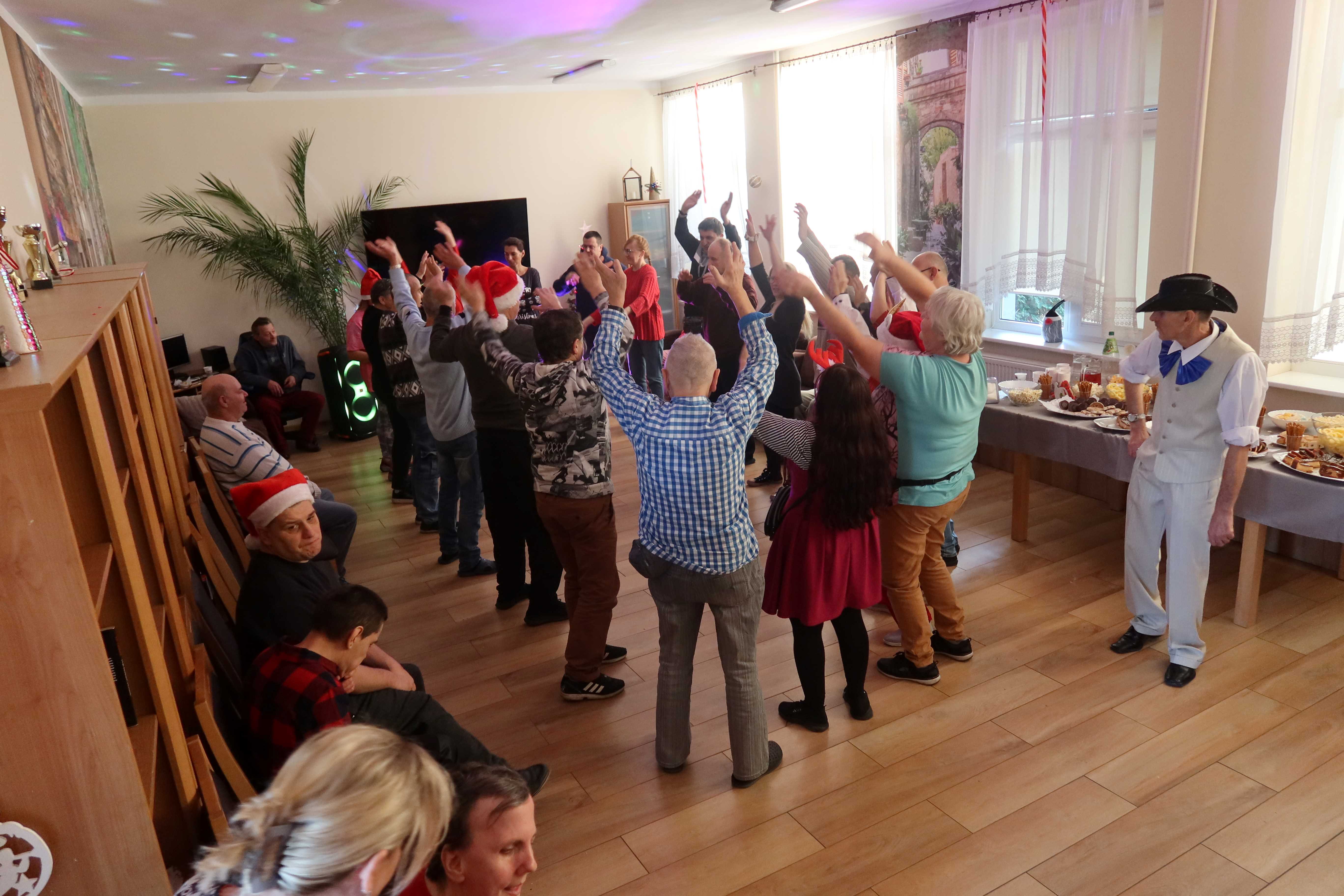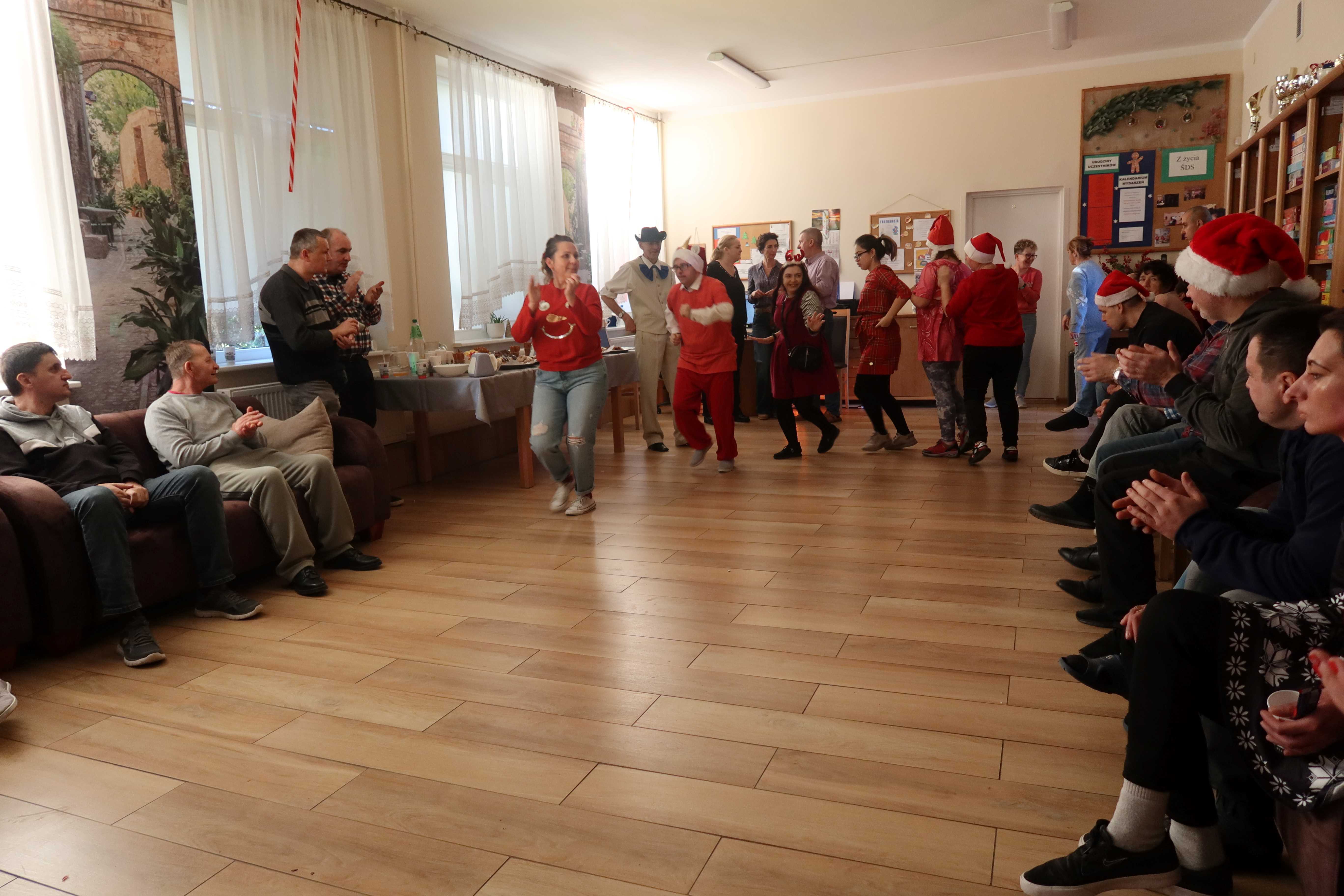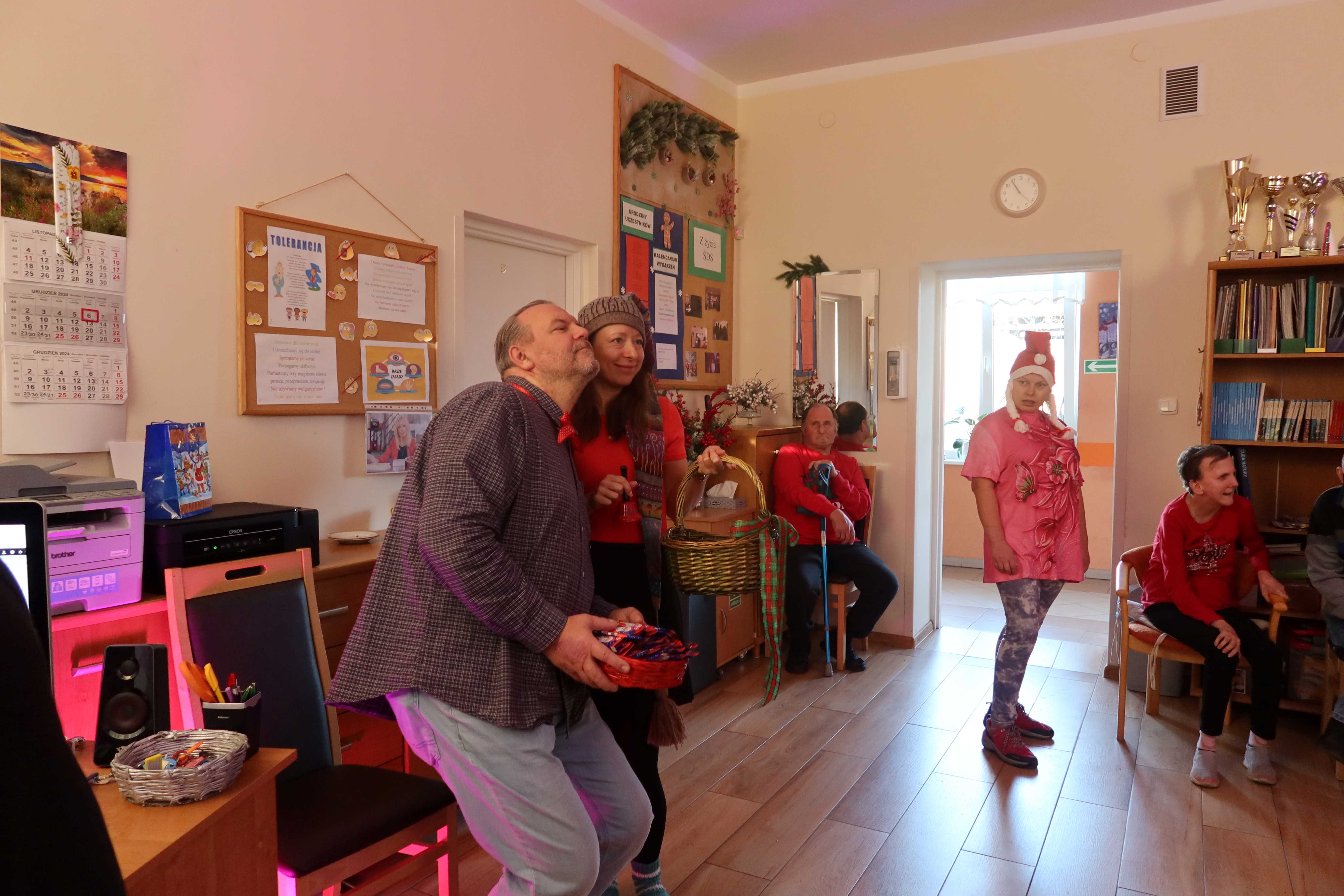 W piątek 6 grudnia 2024 roku Środowiskowy Dom Samopomocy w Przezmarku zamienił się w magiczną krainę Mikołaja. Sala została przystrojona w świąteczne dekoracje – migoczące lampki, choinkę, skrzaty oraz czerwone akcenty nadając wnętrzu niepowtarzalny klimat. Na uczestników i zaproszonych Gości – podopiecznych z Warsztatu Terapii Zajęciowej przy DPS „Krokus” we Władysławowie czekało mnóstwo atrakcji. Wśród konkursów największą popularnością cieszył się konkurs na najpiękniejszy strój Mikołajkowy. Wspaniałej zabawie i wspólnym tańcom towarzyszyła świąteczna muzyka i radosna atmosfera. Impreza obfitowała w najróżniejsze smakołyki – ciasta, pierniki i inne specjały. Nie zabrakło drobnych, słodkich upominków. Wydarzenie to zintegrowało społeczność ŚDS i WTZ, wprowadzając wszystkich w świąteczny nastrój.