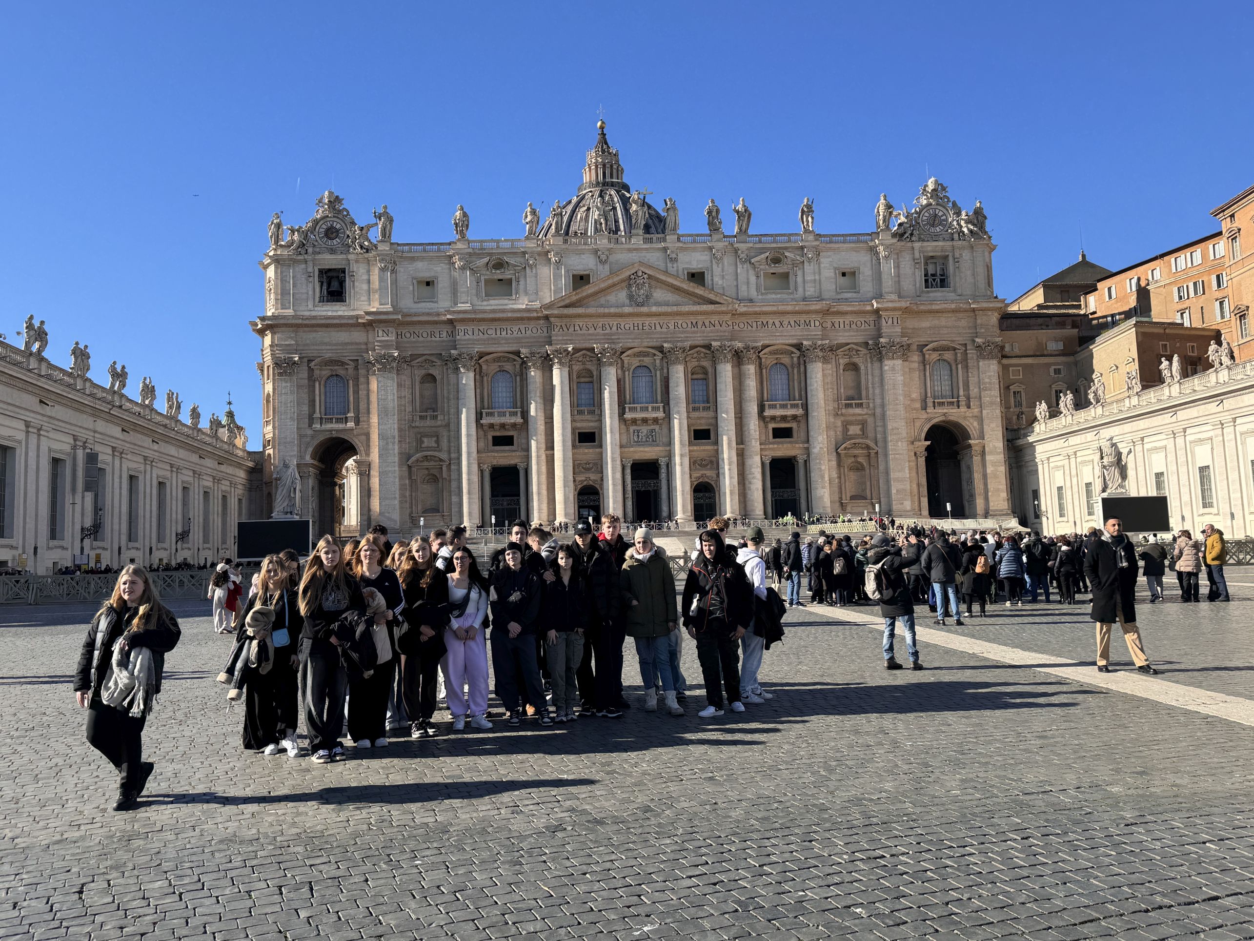 To była prawdziwa podróż w czasie – od starożytności po barok. Uczniowie mieli okazję zwiedzić ikoniczne symbole Rzymu, takie jak Koloseum i Forum Romanum, przenosząc się w wyobraźni do czasów starożytnego imperium. Młodzież odkrywała także tajemnice Watykanu. Monumentalna Bazylika św. Piotra, Muzea Watykańskie oraz Kaplica Sykstyńska z zachwycającymi freskami Michała Anioła wywarły na wszystkich ogromne wrażenie. Każde z tych miejsc przypominało o bogatym dziedzictwie kulturowym, jakie pozostawiła historia.