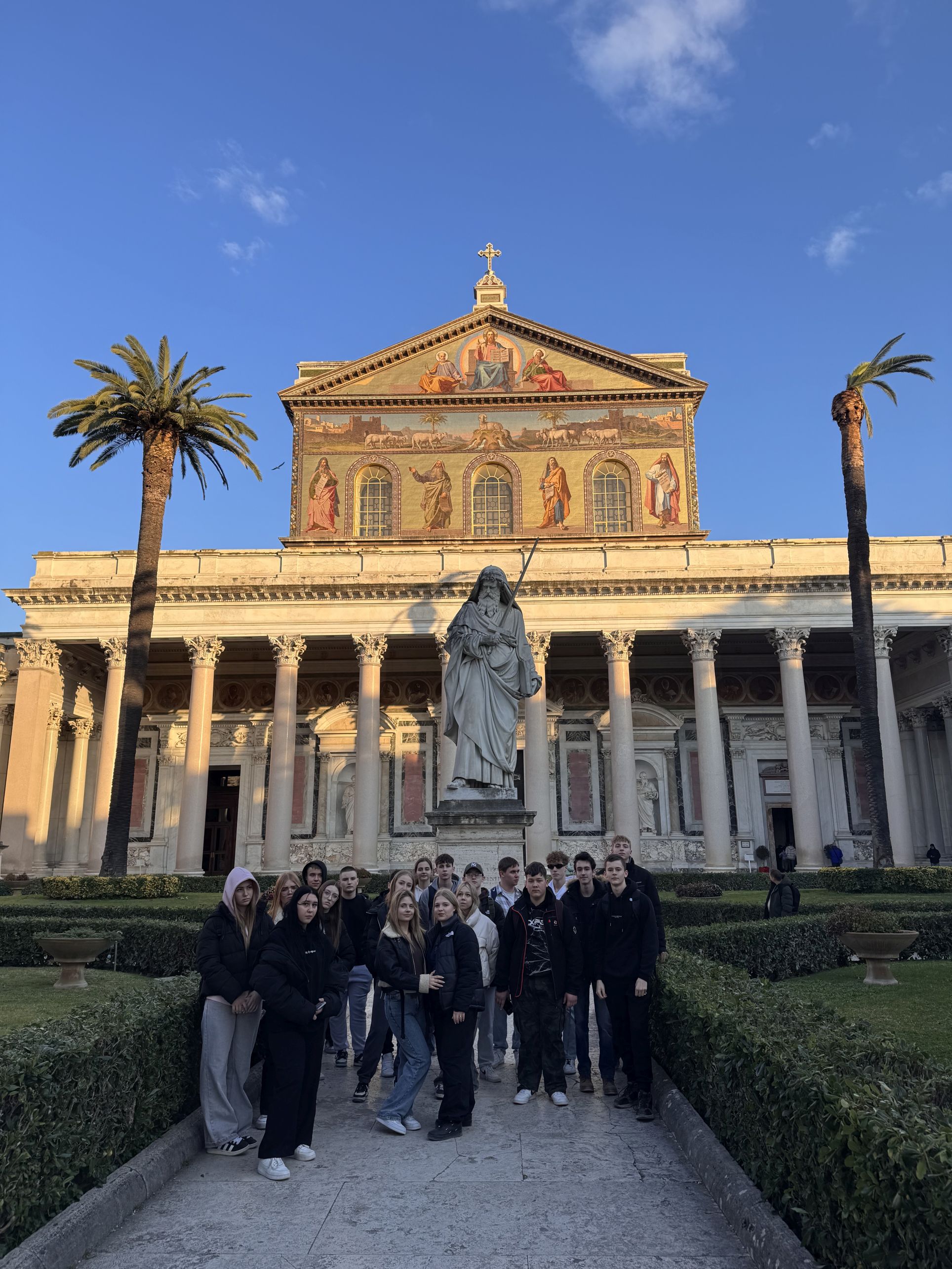 Podczas wycieczki młodzież odwiedziła także najważniejsze rzymskie bazyliki. Oprócz monumentalnej Bazyliki św. Piotra były to: Bazylika św. Jana na Lateranie – najstarsza z czterech bazylik papieskich, Bazylika Matki Bożej Większej oraz Bazylika św. Pawła za Murami, której majestatyczna architektura wzbudziła podziw. Każda z tych świątyń miała swój wyjątkowy charakter i na długo zapadła w pamięci uczestników.