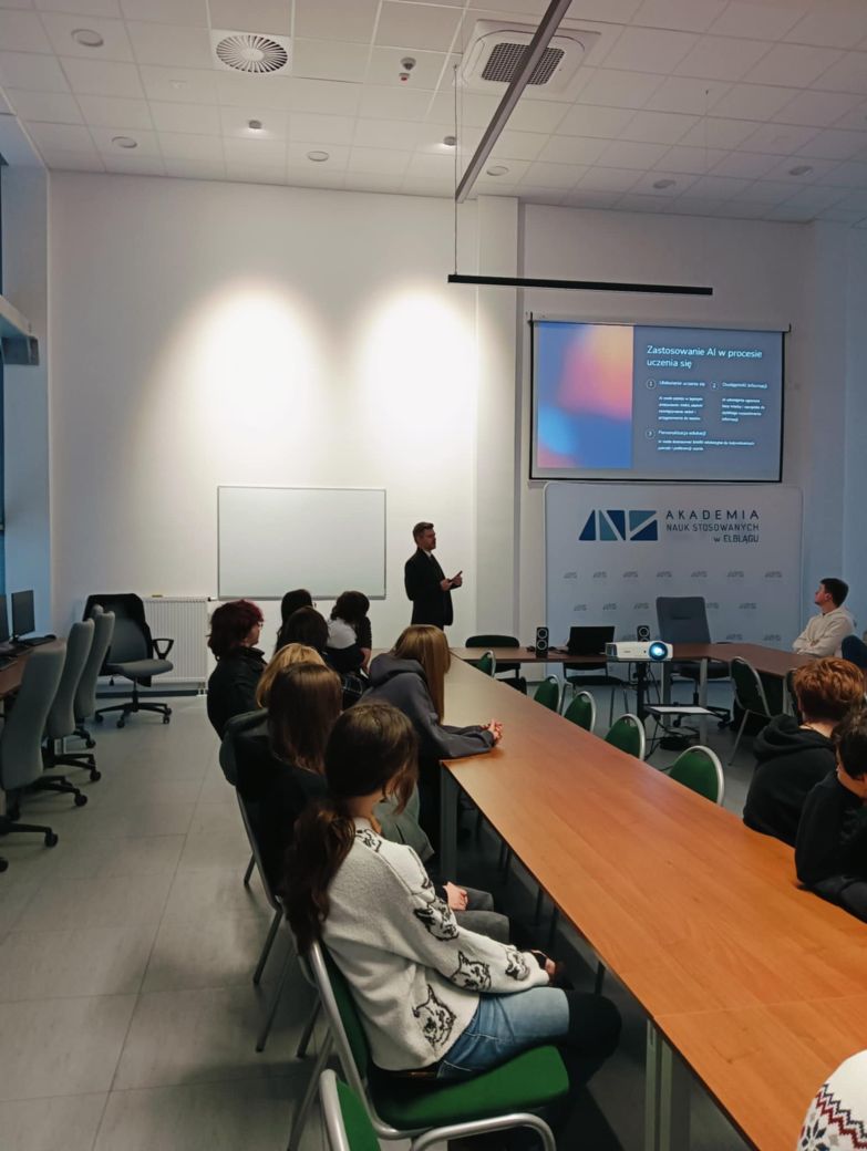 Wczoraj mieliśmy niezwykłą okazję uczestniczyć w inspirującej wizycie w Akademii Nauk Stosowanych w Elblągu. Uczniowie naszej szkoły mieli szansę zapoznać się z nowoczesnymi narzędziami sztucznej inteligencji, które mogą znacząco wzbogacić zarówno proces nauki, jak i nasze codzienne życie.