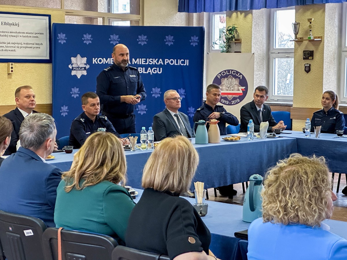 W Komendzie Miejskiej Policji w Elblągu odbyła się odprawa służbowa podsumowująca rok 2024. Komendant Miejski Policji, insp. Tomasz Piaskowski, zaprezentował osiągnięcia funkcjonariuszy, omawiając liczbę przestępstw, wykrywalność oraz plany na 2025 rok. W odprawie wziął udział Ryszard Zając Wicestarosta Elbląski, insp. Mirosław Elszkowski – Komendant Wojewódzki Policji w Olsztynie, Michał Missan Prezydent Elbląga oraz przedstawiciele władz powiatowych i samorządowych.
