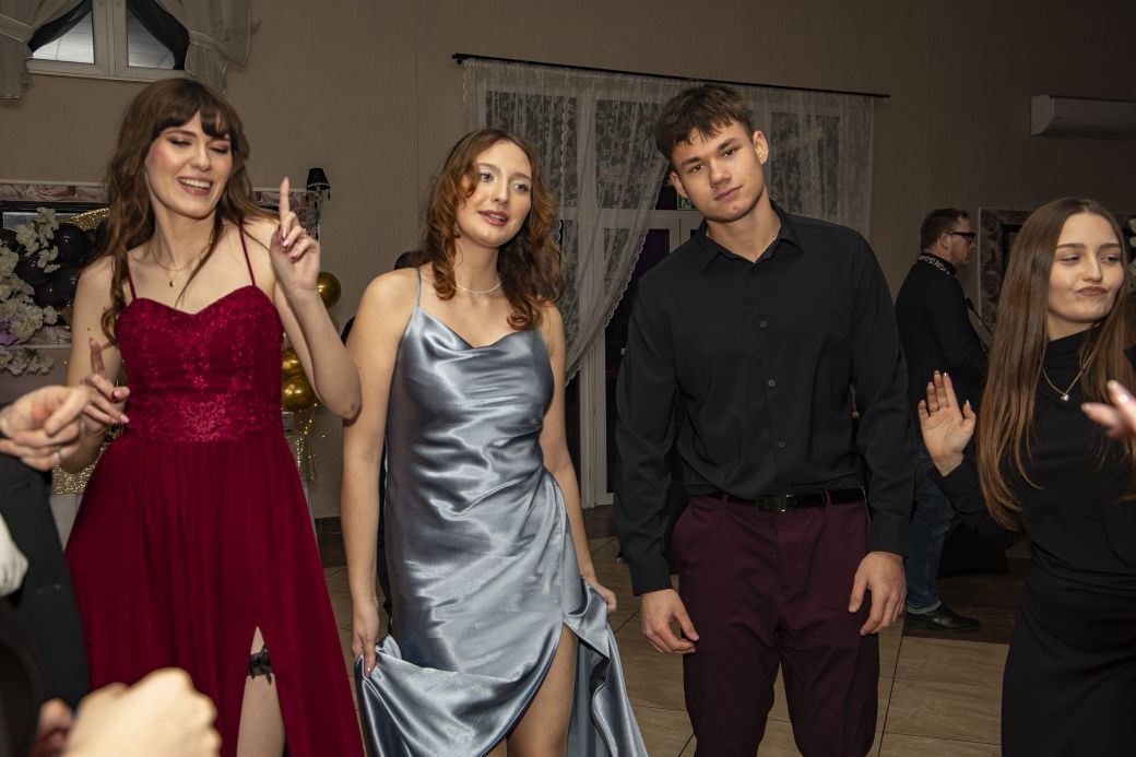 Po uroczystym rozpoczęciu przyszedł czas na zabawę. Oprawę muzyczną zapewnił DJ Magic, który od pierwszych taktów muzyki porwał wszystkich na parkiet. W przerwach między tańcami uczestnicy korzystali z przygotowanych atrakcji. Dużym zainteresowaniem cieszyła się fotobudka, gdzie uczniowie mogli zrobić pamiątkowe zdjęcia z przyjaciółmi. Wieczór obfitował w zabawne i wzruszające momenty. W trakcie quizu „Jak dobrze się znamy?” maturzyści oraz pedagodzy odpowiadali na pytania dotyczące klasy maturalnej oraz wspólnych wspomnień. Ogromną radość wywołało rozpoznawanie koleżanek i kolegów na podstawie zdjęć z dzieciństwa – było to nie tylko okazją do śmiechu, ale także refleksji nad wspólnie spędzonym czasem.