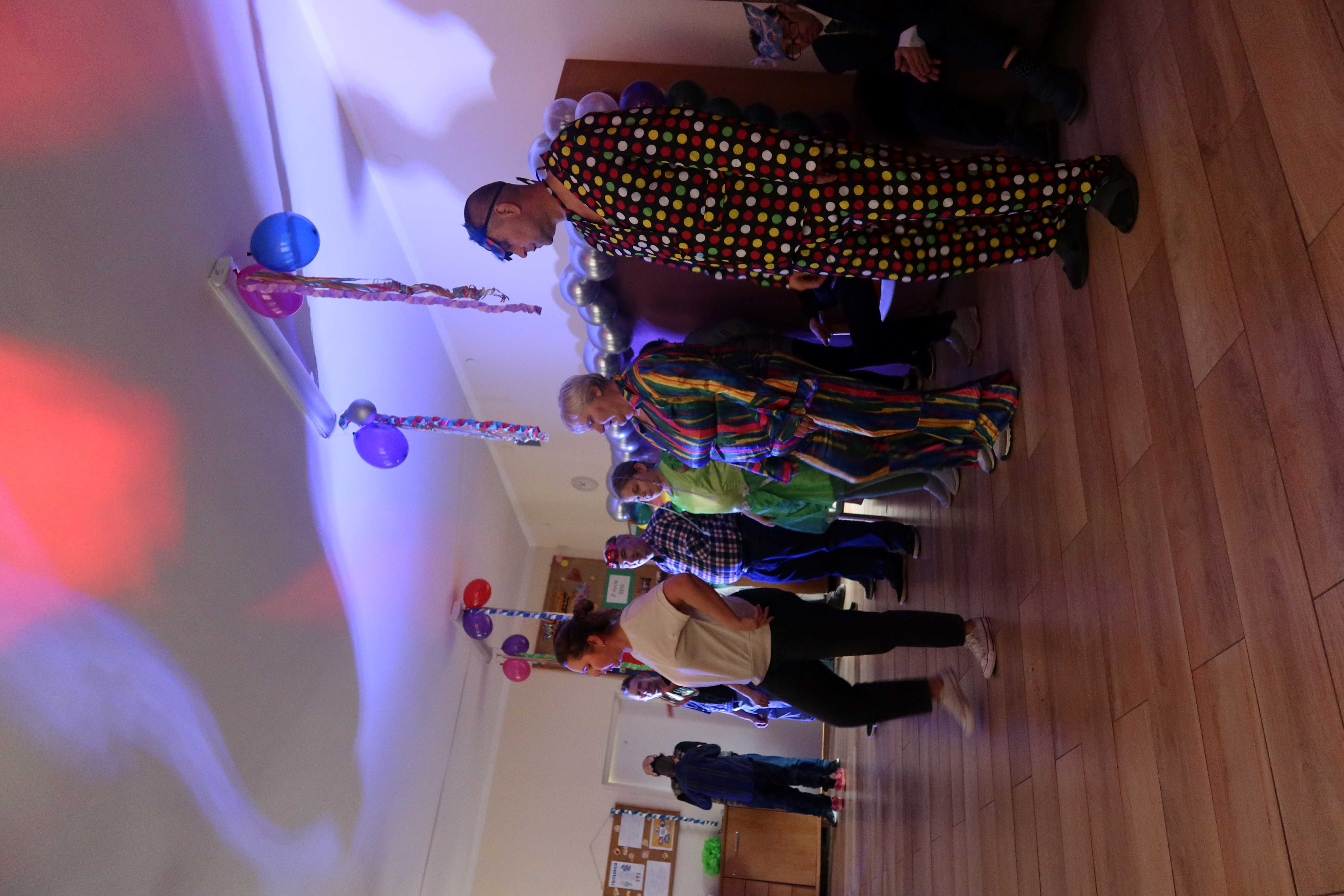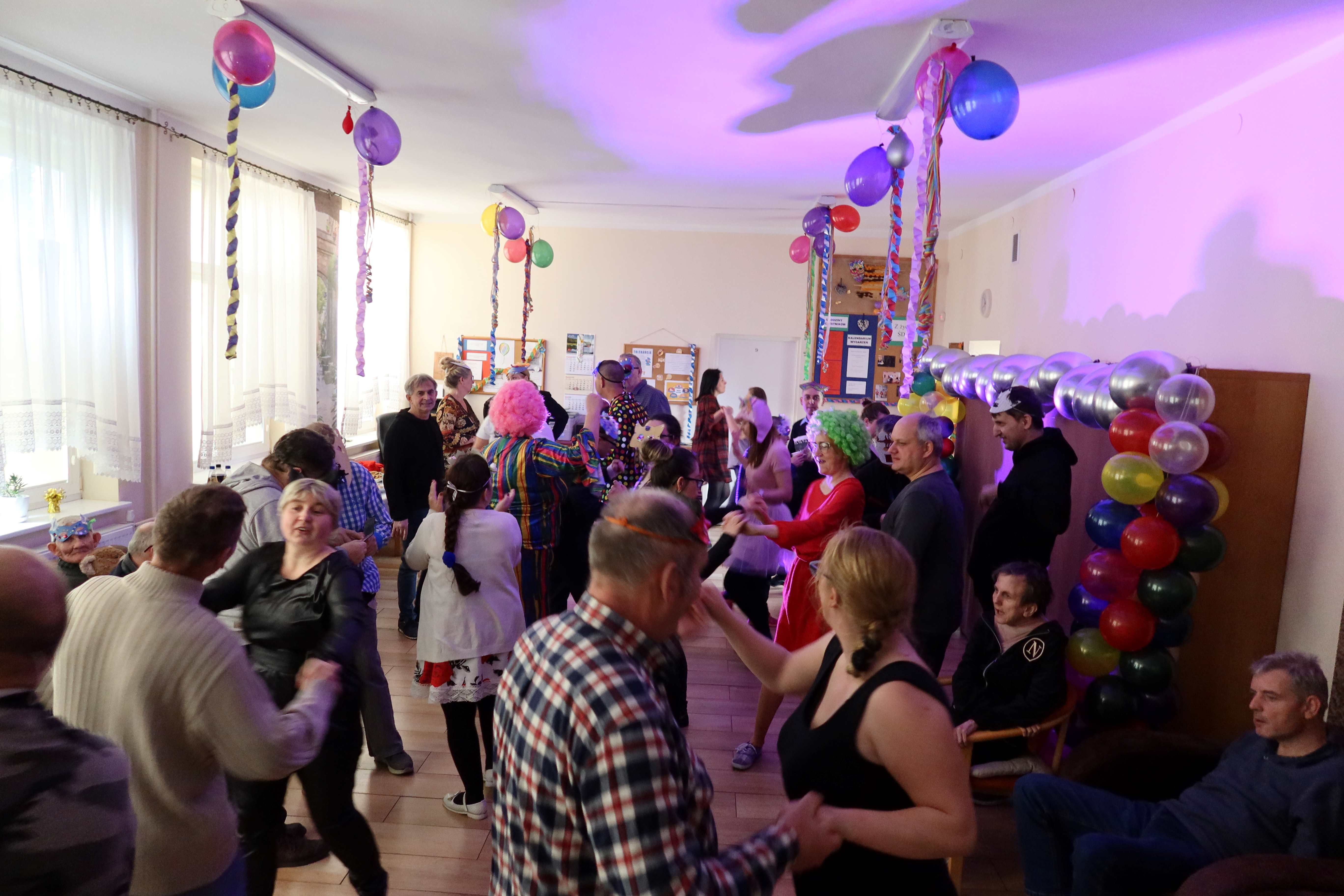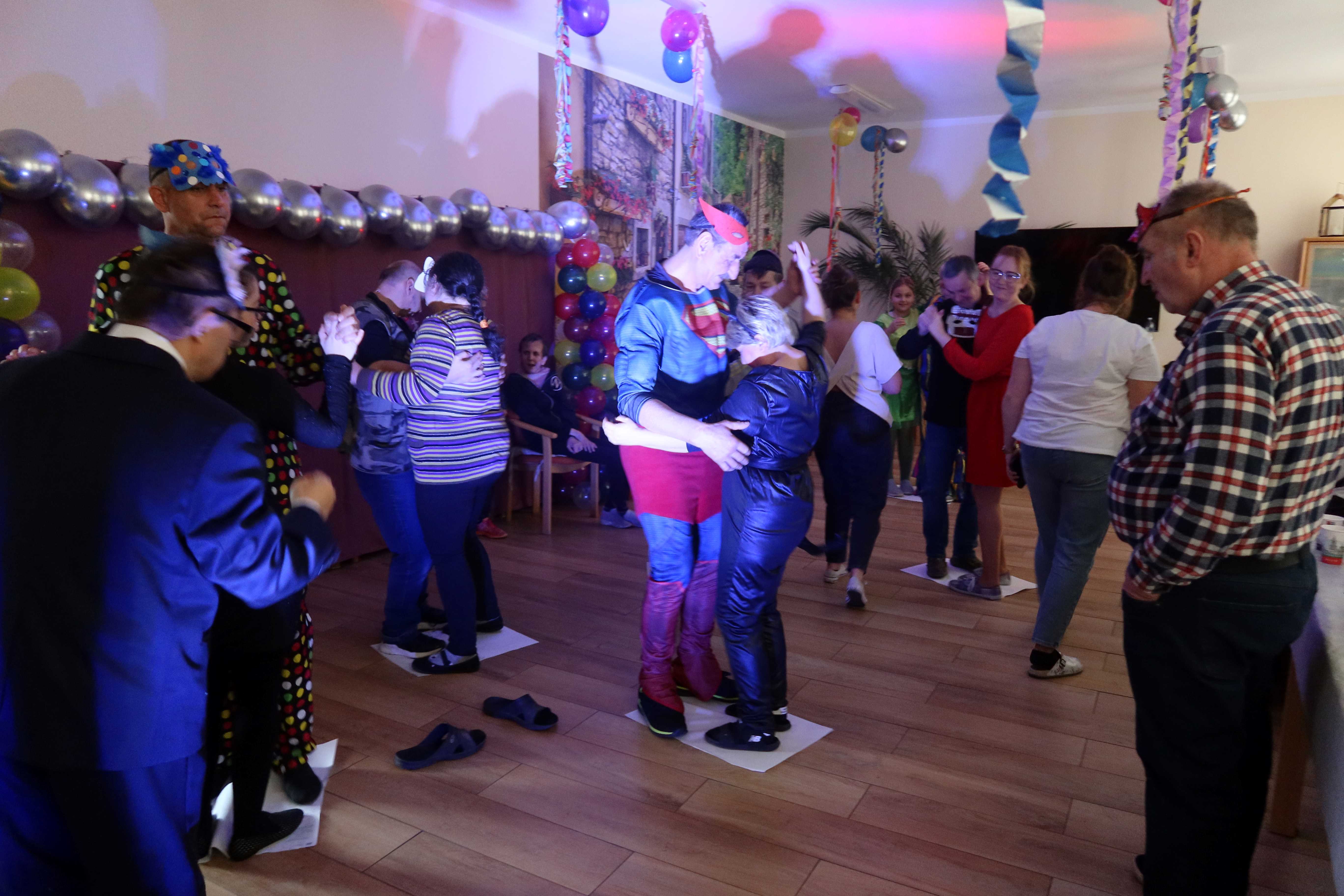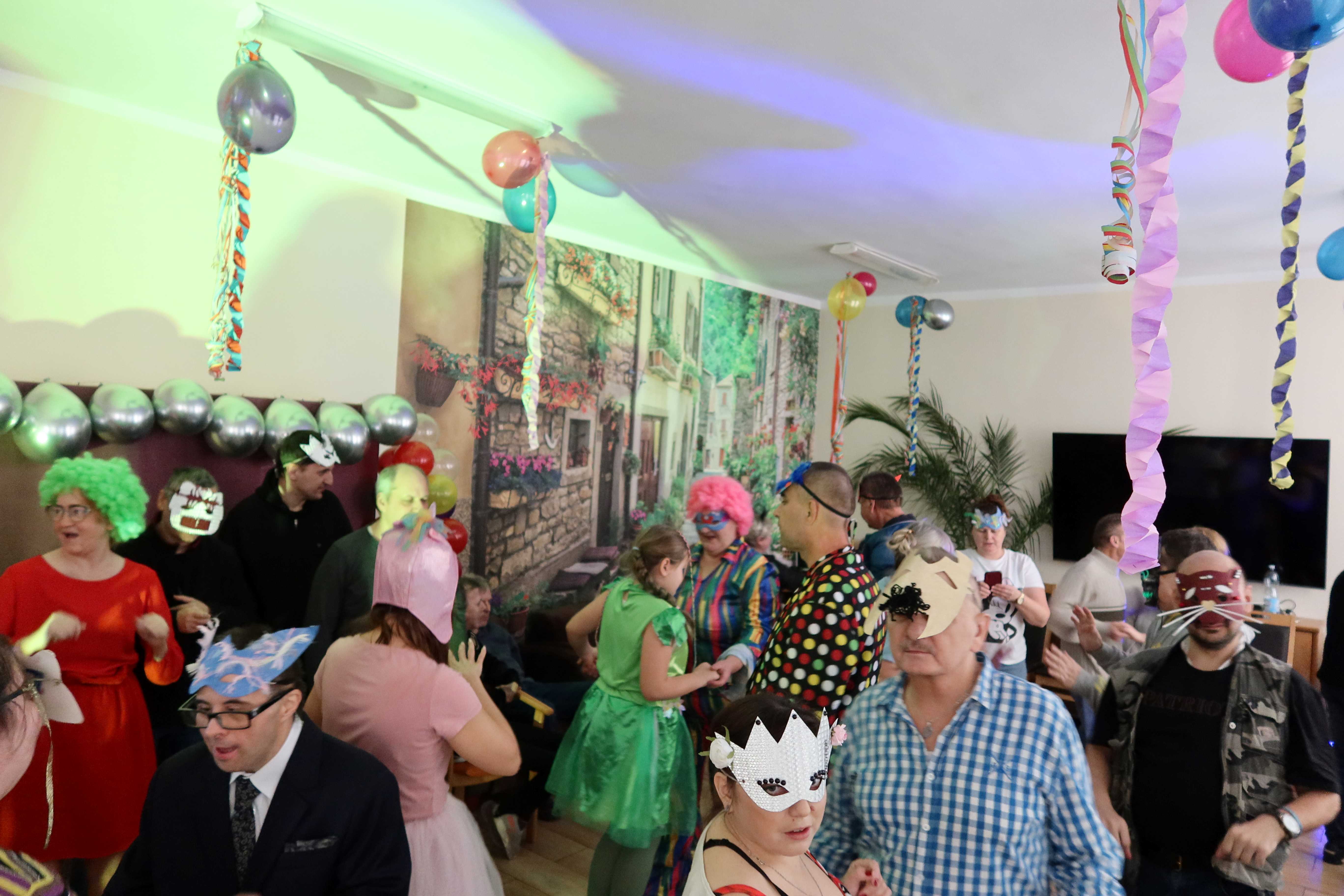Sala przystrojona kolorowymi balonami, serpentynami i migoczącymi światłami, stworzyła magiczną atmosferę, idealną do świętowania karnawału. Od początku słychać było śmiech, muzykę i entuzjastyczne rozmowy. W programie znalazły się liczne atrakcje: wspólne tańce, konkursy z nagrodami, w tym konkurs na najciekawszy strój karnawałowy. Tego dnia można było podziwiać barwne przebrania i przepięknie zdobione maski. Na stołach czekały pyszne przekąski, które umilały czas między kolejnymi tanecznymi hitami.
