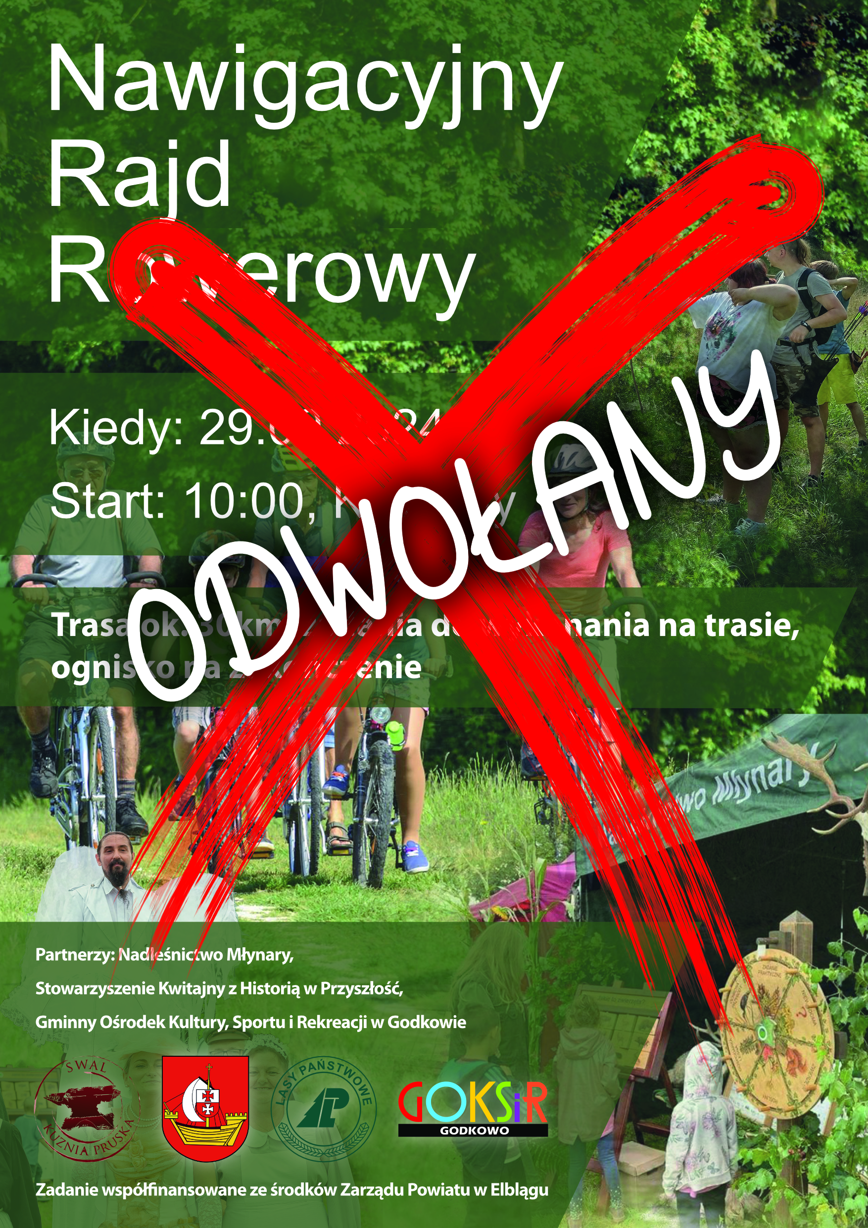 Nawigacyjny Rajd Rowerowy, planowany na najbliższą niedzielę (29 września), zostaje odwołany z powodu niesprzyjających okoliczności, niezależnych od organizatorów, oraz prognozowanego na weekend silnego wiatru.