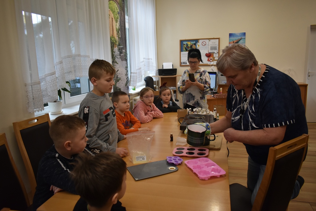 W dniu 1 lutego 2023 r. Środowiskowy Dom Samopomocy w Przezmarku, odwiedziła grupa dzieci ze Świetlicy Wiejskiej w Przezmarku. Celem spotkania była integracja społeczna środowiska lokalnego w czasie trwania ferii zimowych. Dla Naszych Gości przygotowaliśmy wiele ciekawych i atrakcyjnych zajęć, w tym: rekreacyjno-sportowych z wykorzystaniem sprzętu i pomocy stanowiących wyposażenie Sali Doświadczania Świata, zajęcia z zakresu wikliny papierowej oraz tworzenia mydełek glicerynowych. Dzieci mogły wykazać się kreatywnością i pomysłowością jak, również rozwinąć umiejętności zręcznościowe, spostrzegawczość i koncentrację. Czas upłynął w radosnej atmosferze przy słodkim poczęstunku w postaci ciasteczek owsianych upieczonych przez naszych uczestników. Dziękujemy za wspólnie spędzony czas.