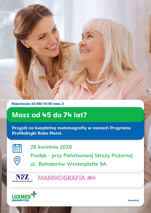 Czytaj więcej: bezpłatne badania mammograficzne LUX MED w kwietniu - Pasłęk