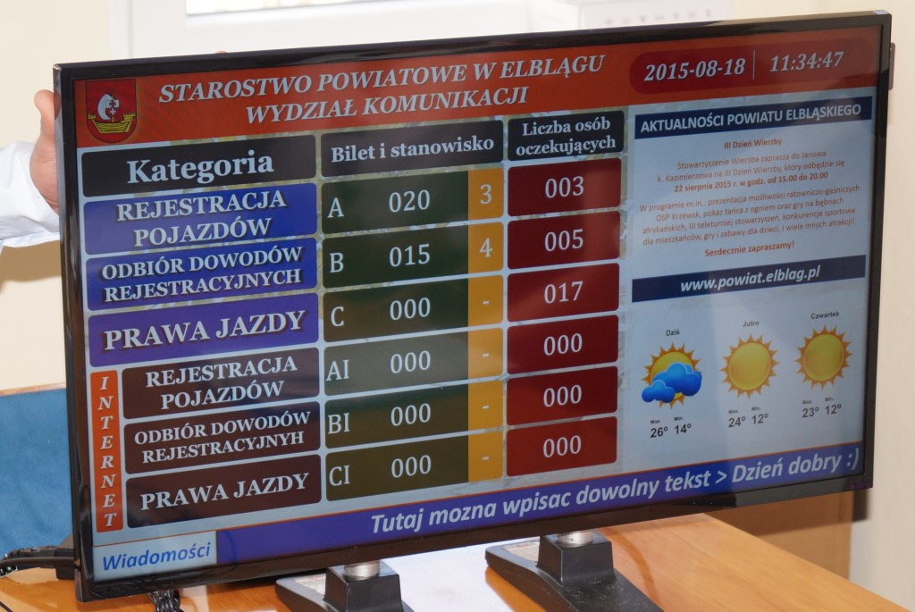 Ponadto funkcjonalność nowoczesnego systemu kolejkowego pozwala jednocześnie wyświetlać dodatkowe komunikaty i instrukcje ułatwiające poruszanie się po urzędzie, co w znaczący sposób przyśpiesza proces obsługi. Istnieje również możliwość zarezerwowania miejsca w kolejce za pośrednictwem internetu.