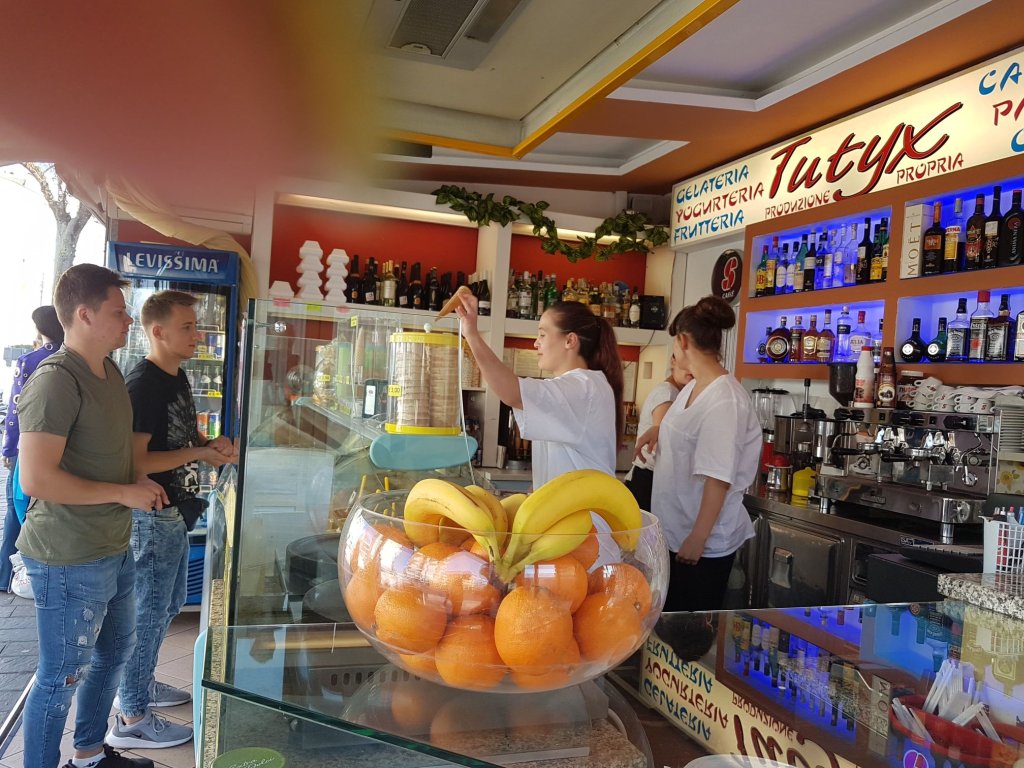 Praktyki zawodowe w Rimini były punktem w projekcie, na który uczniowie czekali kilka miesięcy. Czas ten wypełniony był zajęciami językowymi, kulturoznawczymi oraz doradczymi przygotowującymi do wyjazdu. Same praktyki odbywały się w różnych zakładach – od ciastkarni, lodziarni po zakłady przetwórstwa warzyw i owoców. Godziny pracy też były różne. W większości miejsc panowała przyjazna, sprzyjająca pracy atmosfera. Młodzież komunikowała się na wiele sposobów – wykorzystywała język angielski, włoski, a i migowy :) Nie można powiedzieć, że praca była lekka, ale nikt tego nie obiecywał :) Uczniowie potrafili uformować tysiące croissantów, przebrać masę skrzynek karczochów, truskawek czy czereśni, przygotować do transportu mnóstwo lodów.