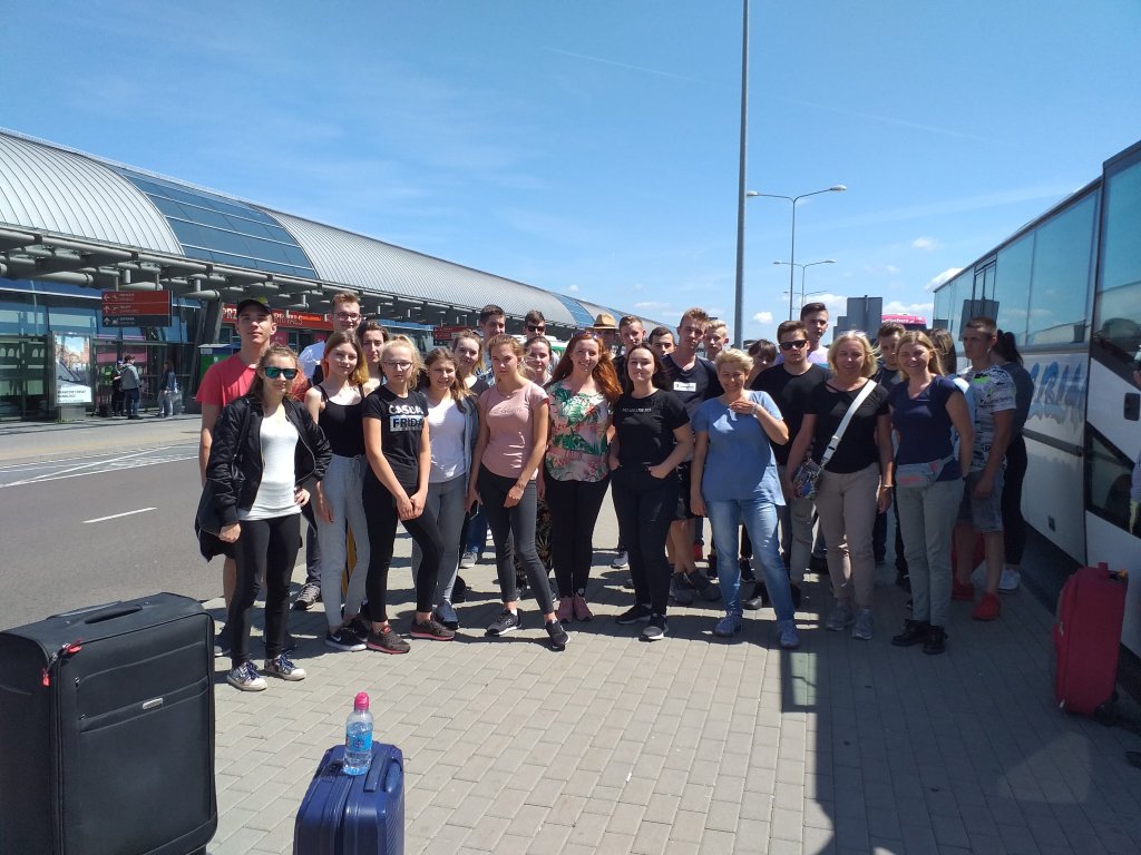 Słoneczna pogoda powitała na lotnisku Warszawa Modlin uczniów Zespołu Szkół Ekonomicznych i Technicznych w Pasłęku wracających z Włoch.