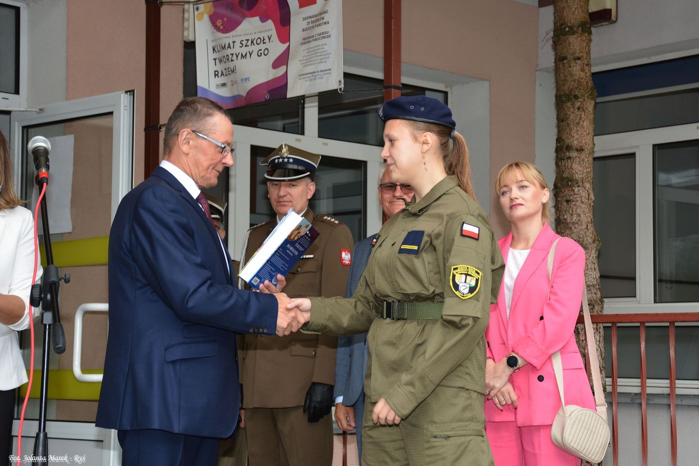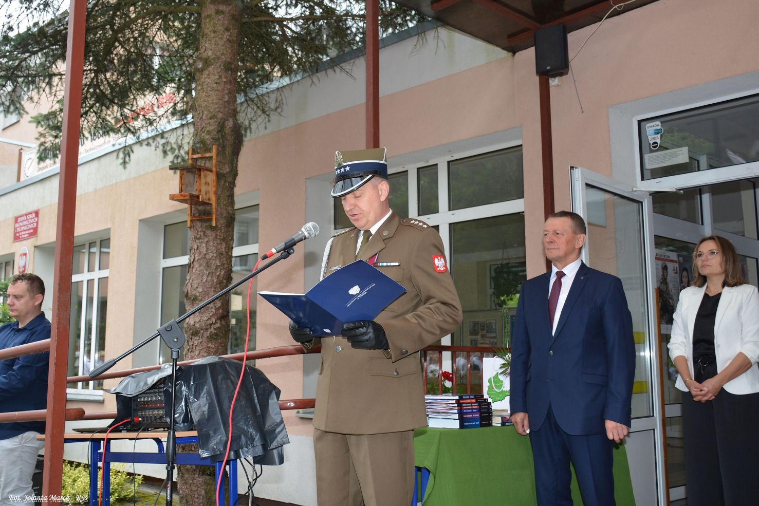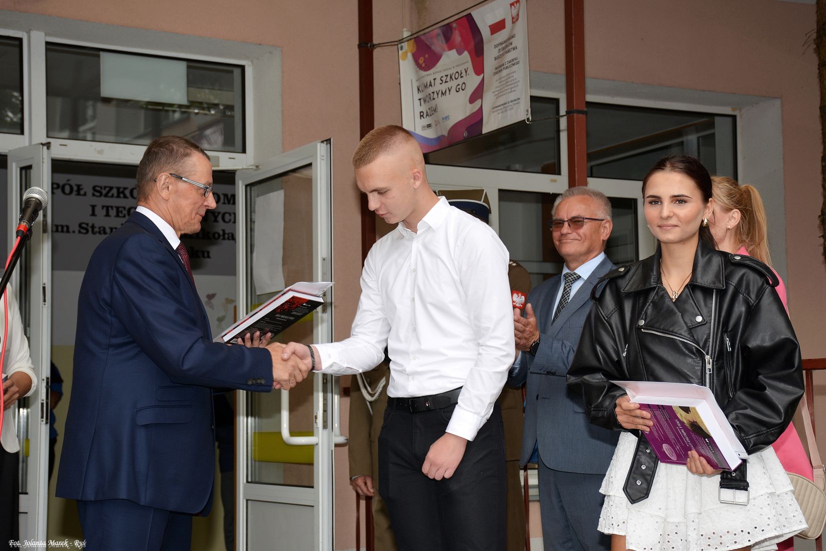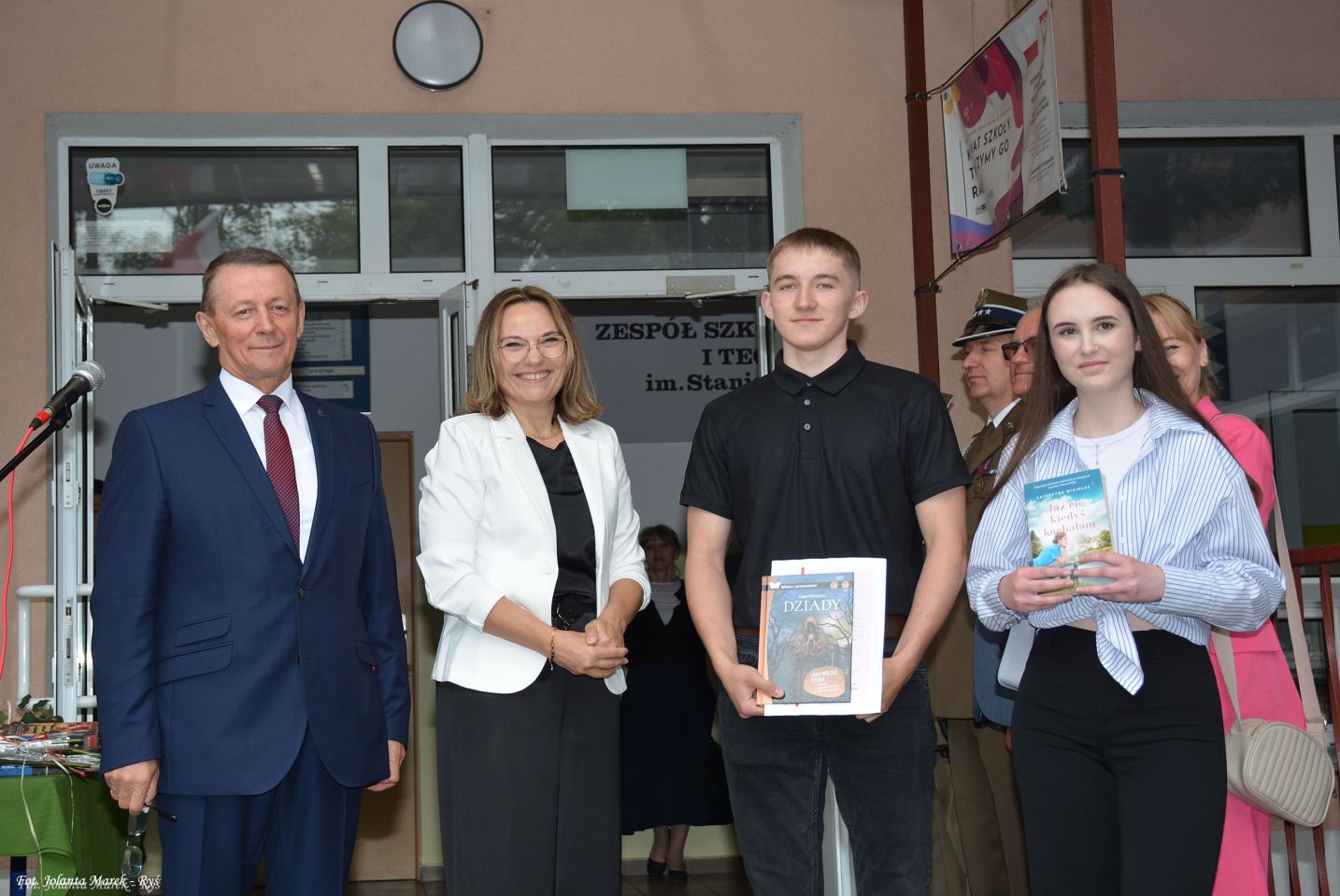 Wśród zaproszonych gości obecni byli: wicestarosta Powiatu Elbląskiego Ryszard Zając, przedstawiciel WCR w Elblągu kpt. Mirosław Kruba oraz przewodnicząca Rady Rodziców Ewa Błachnio-Semkiw, którzy również skierowali do społeczności szkolnej słowa uznania i życzenia udanych, bezpiecznych wakacji.