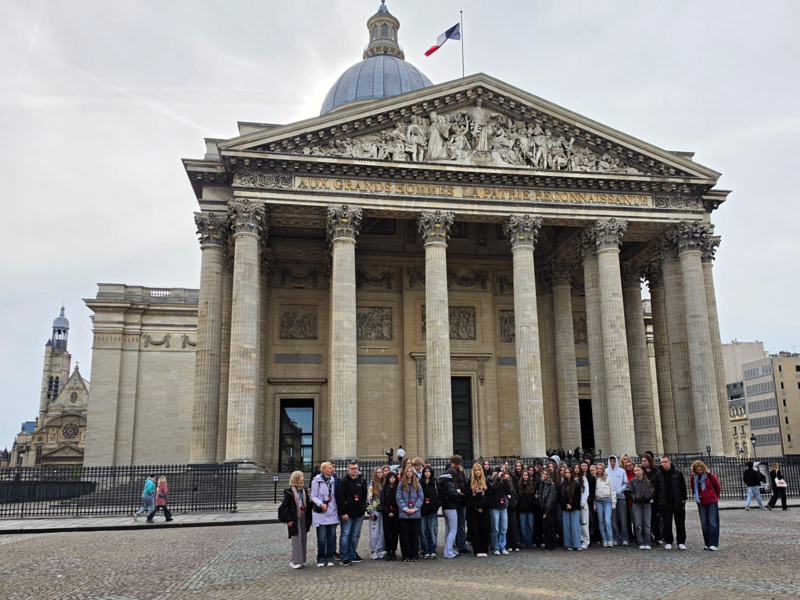 Kolejnym przystankiem był Paryż, gdzie program obfitował w ikony światowej kultury. Zwiedzanie rozpoczęliśmy od rejsu po Sekwanie – z pokładu statku uczniowie mogli z bliska przyjrzeć się misternym zdobieniom paryskich mostów i fasadom nadrzecznych pałaców. Młodzież stanęła u stóp Wieży Eiffla, przeszła reprezentacyjnymi Polami Elizejskimi i podziwiała majestatyczny Łuk Triumfalny. Wyjątkowym doświadczeniem było obcowanie ze sztuką w Muzeum Orsay, gdzie uczniowie mogli podziwiać arcydzieła impresjonistów. Wieczorna wizyta na Montmartre i panorama stolicy spod bazyliki Sacré-Cœur dopełniły magii tego miejsca.