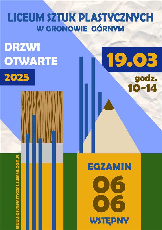 Już 19 marca 2025, w godz. 10:00 - 15:00 zapraszamy Cię do Gronowa Górnego. To idealna okazja, by zobaczyć szkołę od środka! Podczas Drzwi Otwartych po szkole oprowadzą Cię nasi uczniowie, a Ty będziesz mógł zajrzeć do pracowni artystycznych, klas przedmiotów ogólnych i strefy wystawienniczej.